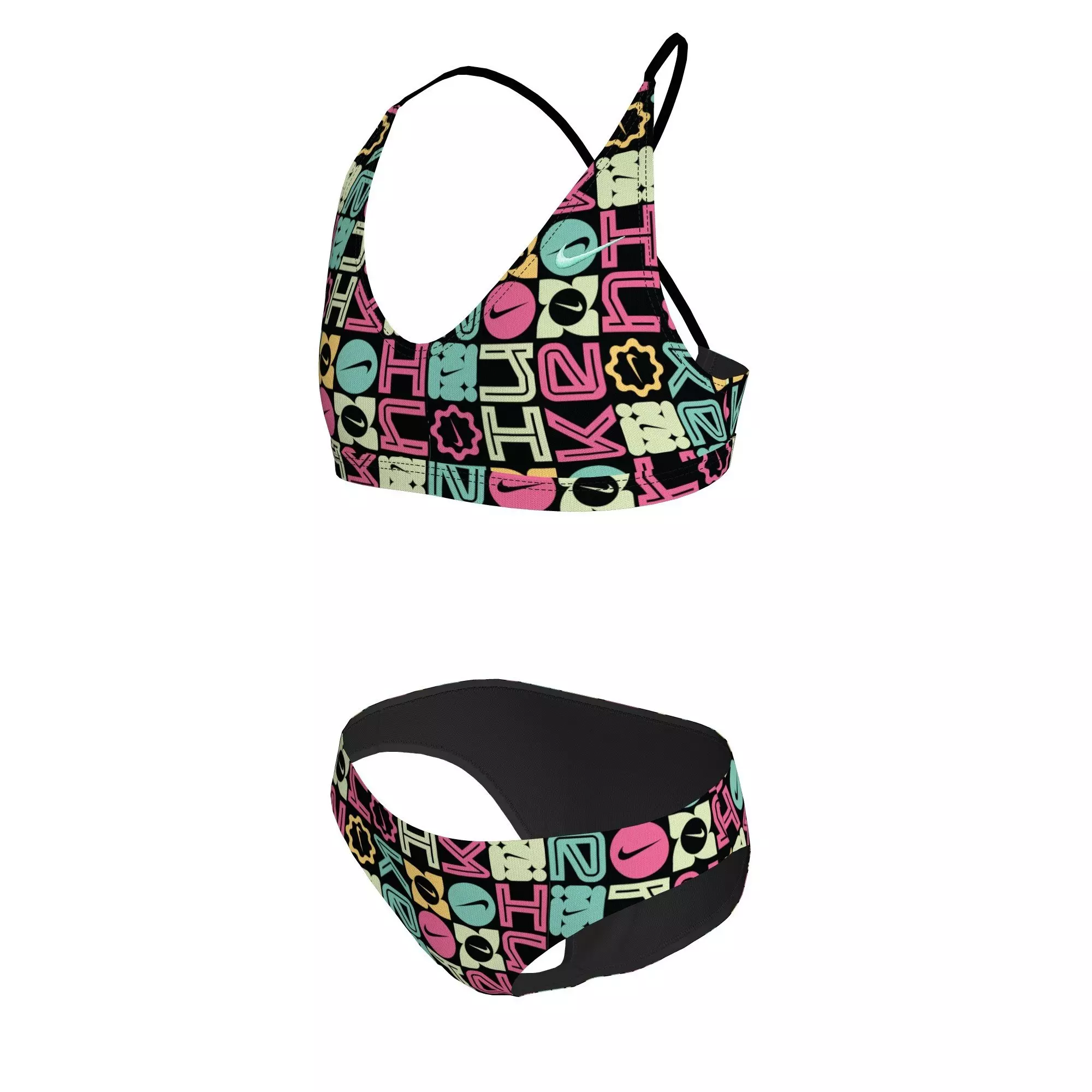 Nike Big Girls' Swim Lace Up Logo Block Bikini - Black