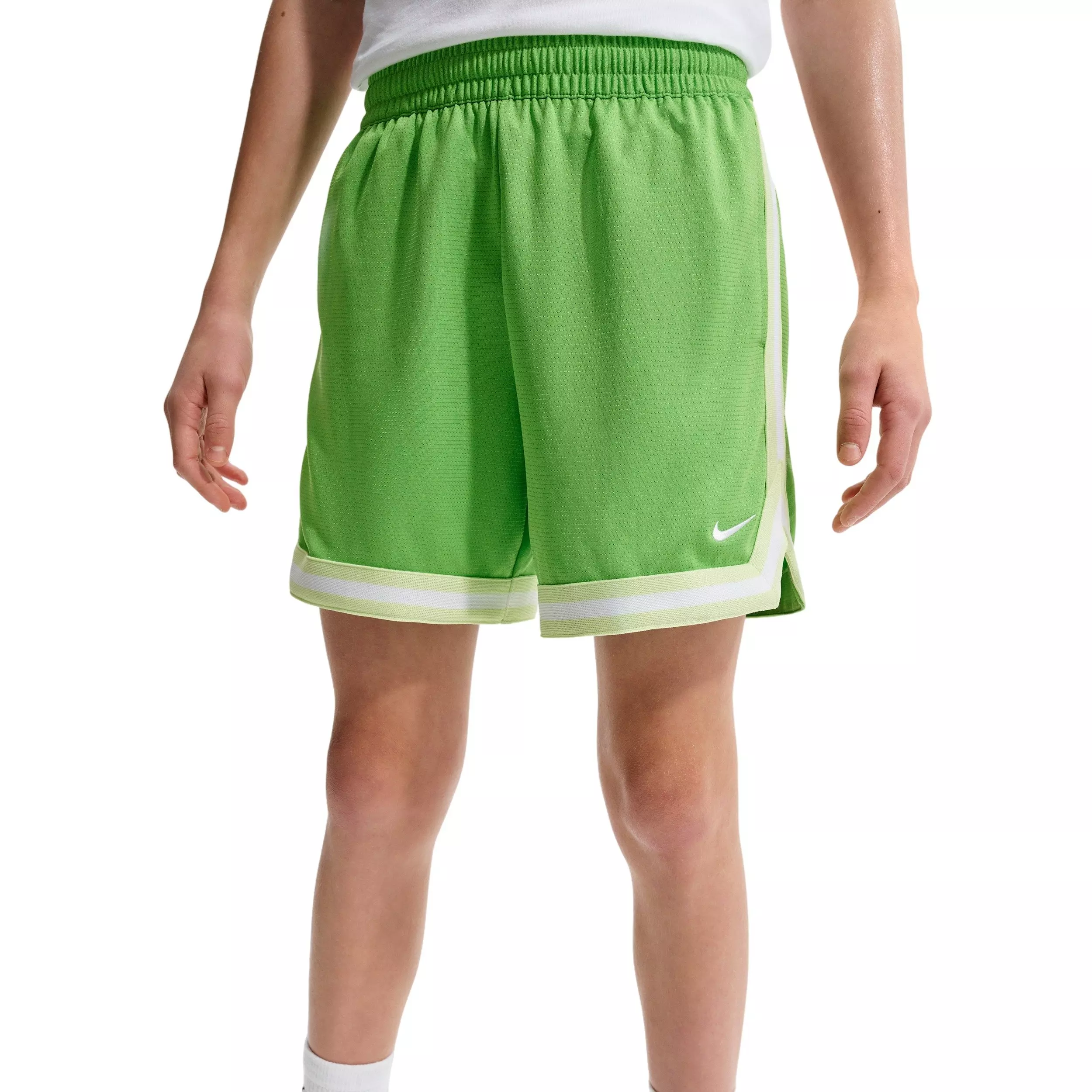 From layup drills at home to pickup games in the park with your friends, you can do it all in these roomy Nike Big Kids' DNA 5" Basketball Shorts - Green. Powered by a comfortable knit fabric that pulls sweat away from your skin, they help you stay cool and focused through every dribble. Plus, a zippered pocket helps keep small essentials secure as you run down the court to make your next slam dunk.