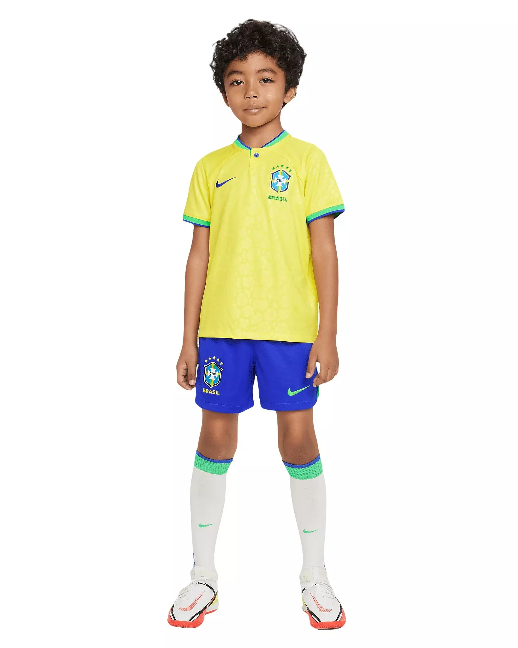 Future champions need the uniform to match. This Nike Big Kids' Dri-FIT Brazil 2022/23 Home Soccer Kit includes a jersey, shorts and socks for a complete look inspired by the elite. Breathable fabric feels soft and helps keep sweat off their skin for lasting comfort.Features