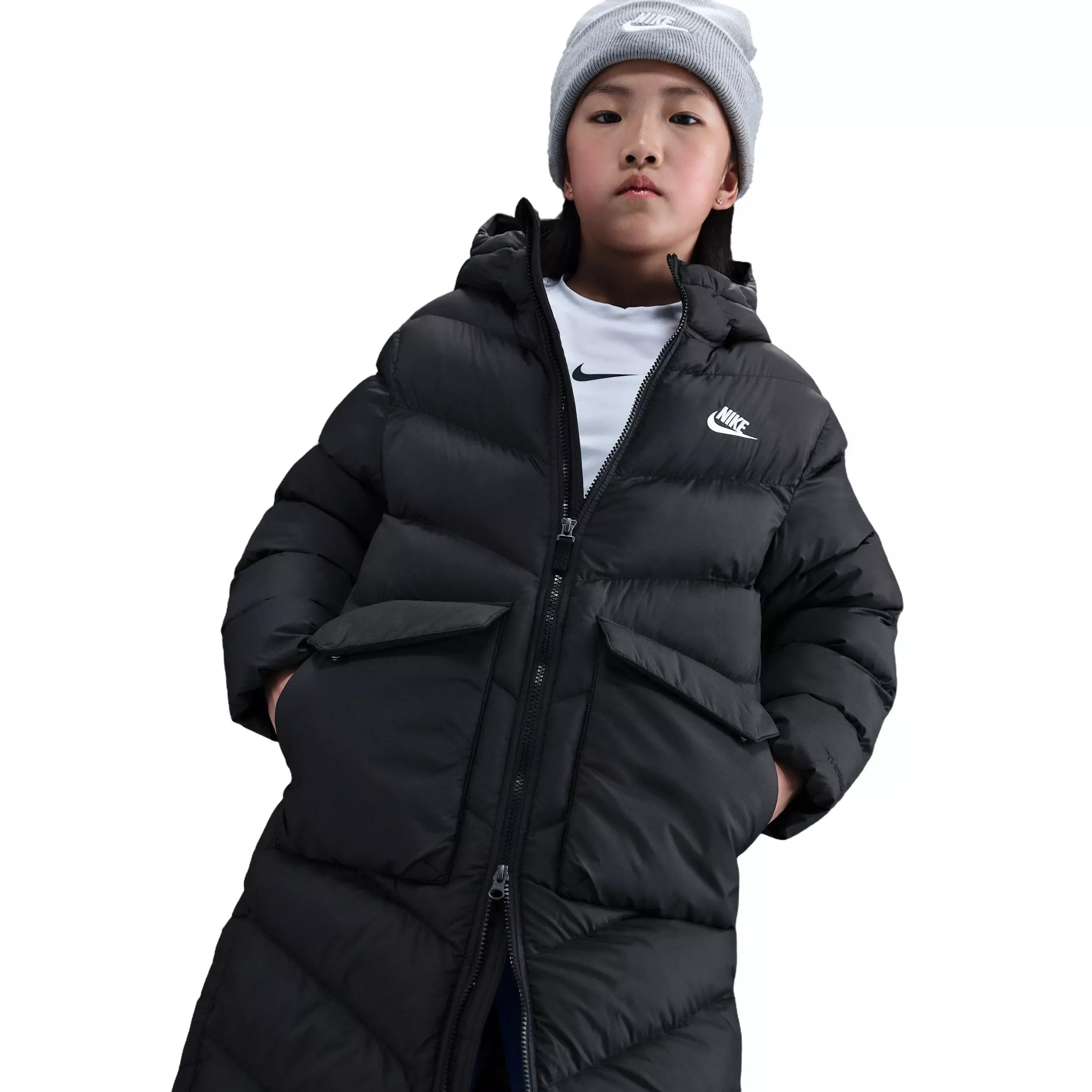 Nike Big Kids' Sportswear All Day Play Therma-FIT Loose-Fit Knee-Length Puffer Jacket - Black
