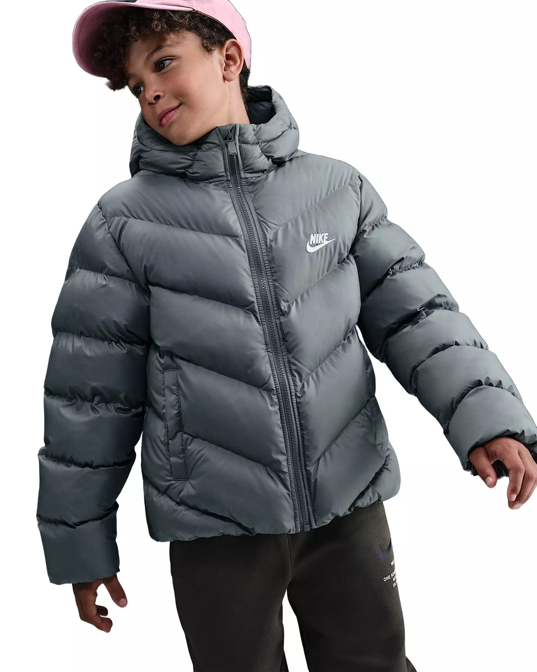 Warm up their cold‑weather adventures with the Nike Big Kids' Sportswear All Day Play Therma-FIT Loose-Fit Puffer Jacket - Grey. Lightweight synthetic insulation teams with Therma‑FIT technology to help manage body heat, delivering cozy coverage without bulk so kids can move freely and layer comfortably.