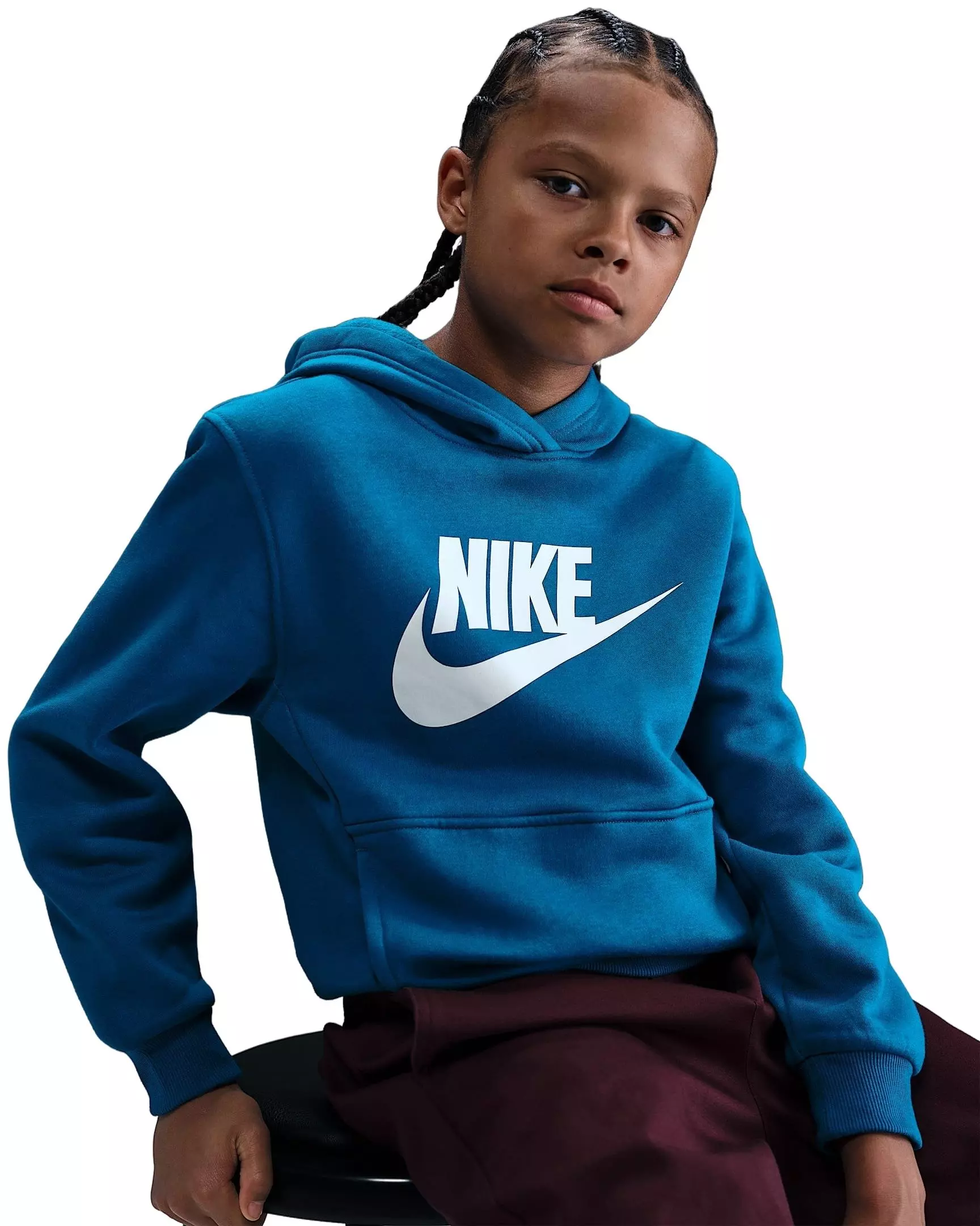 Just as cuddly soft as your favorite stuffed animal, this Nike Big Kids' Sportswear Club Fleece Full-Zip Winterized Hooded Jacket - Blue is your ticket to staying comfortable in the cold. Its plush fleece has a thick, wooly feel that helps keep you extra warm and cozy. Crinkle woven taping and stretchy contrast ribbing top it off.Features