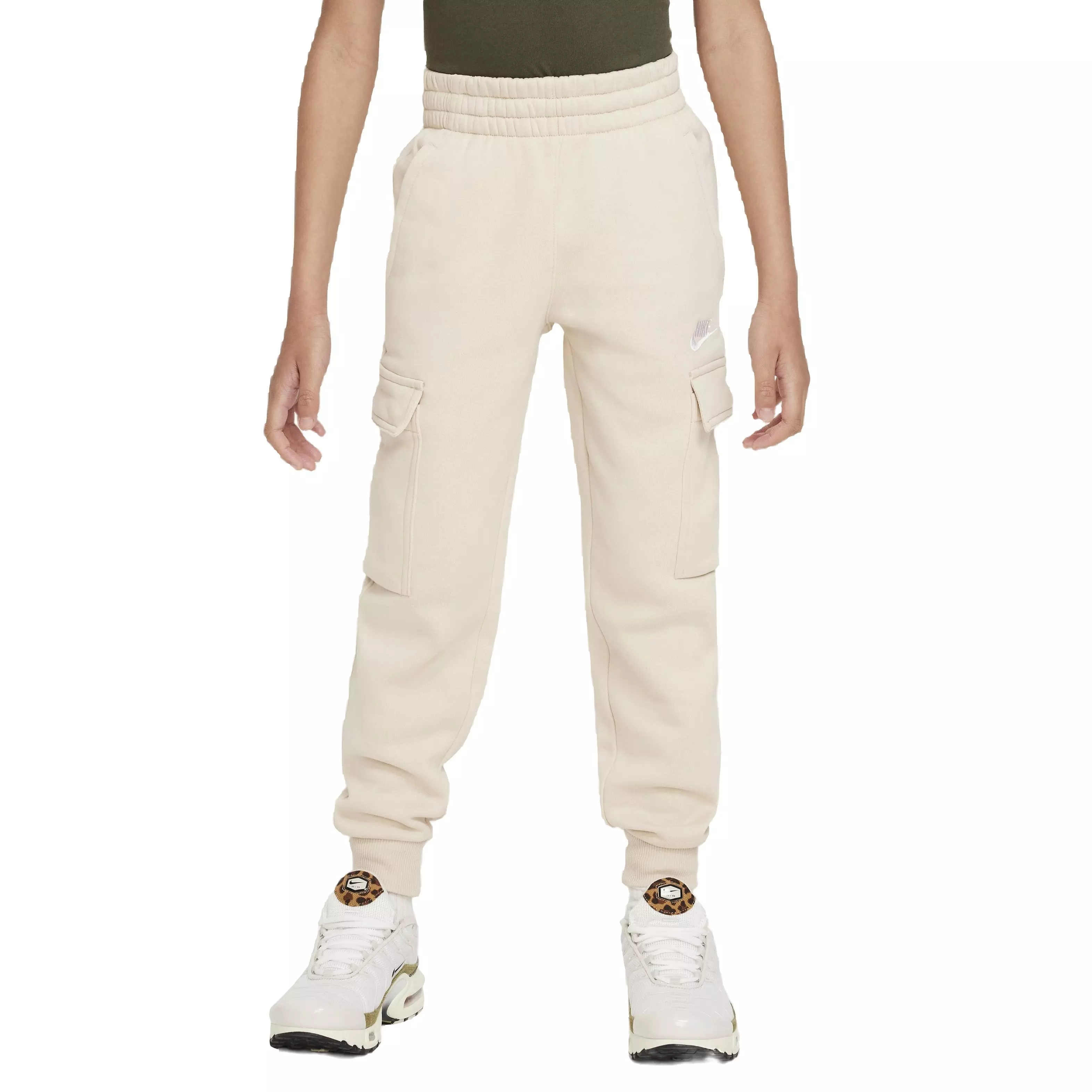 Keep all your treasures close with these brown Nike Big Kids' Sportswear Club Fleece LBR Cargo Pants. Smooth on the outside, brushed soft on the inside, this lightweight fleece is an easy layer when you want a little extra warmth. So go ahead, wear them year-round—that's what they're made for!