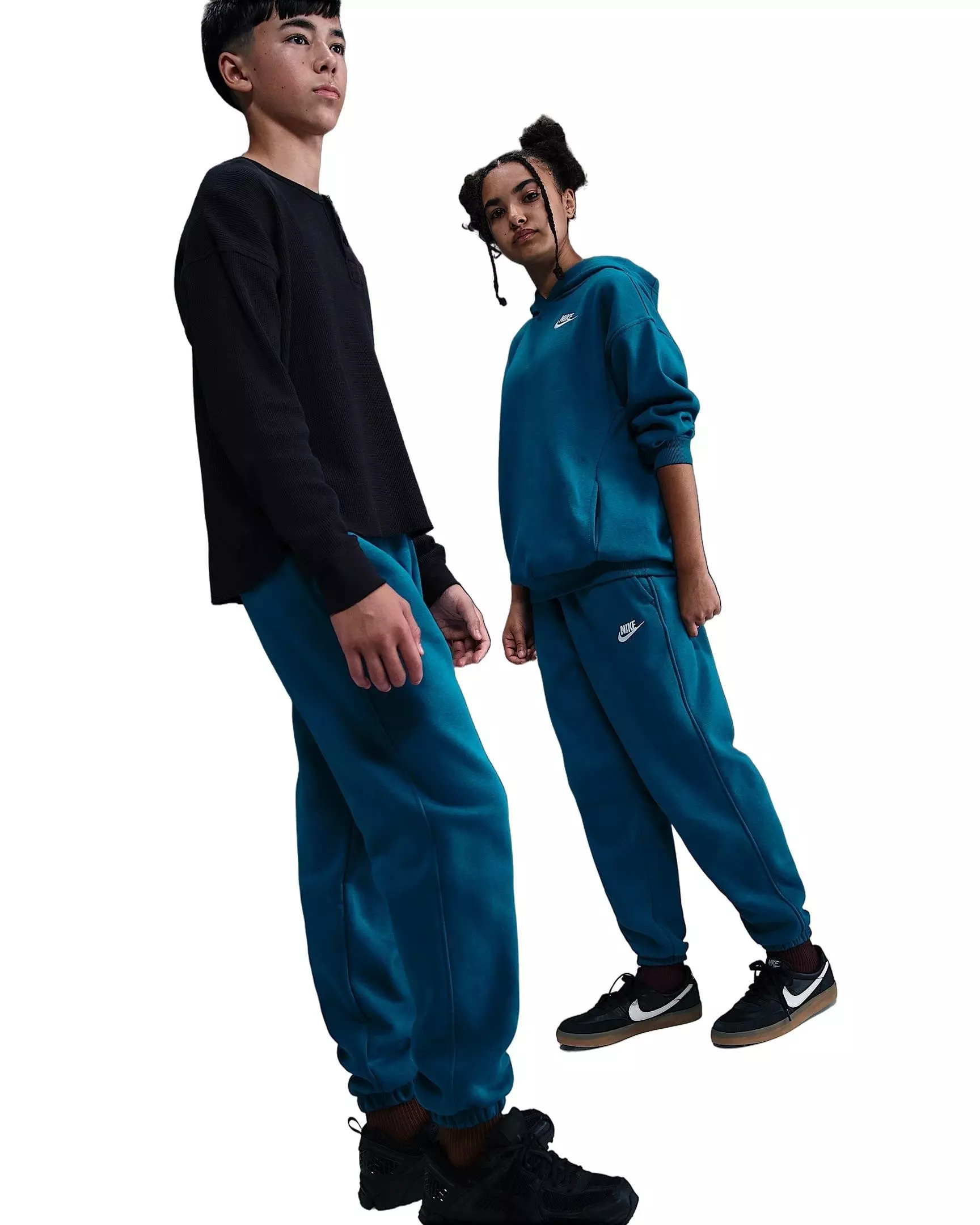 Meet our favorite cozy essential. Made from lightweight fleece that's smooth on the outside and brushed soft on the inside, these Nike Big Kids' Sportswear Club Fleece Loose Pants - Blue are an easy layer when you want a little extra warmth. A loose fit through the legs helps make them feel extra comfy.Features