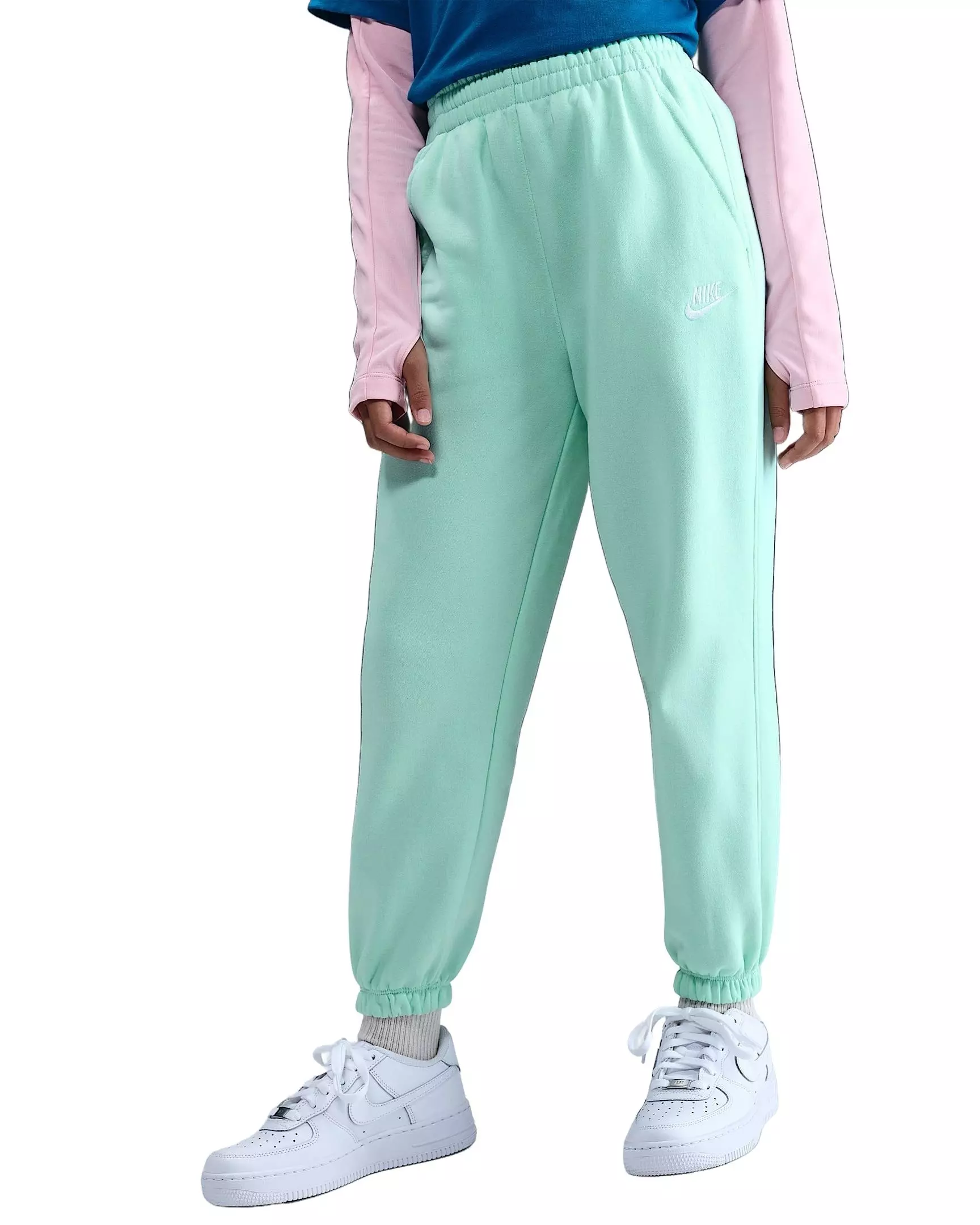 Meet our favorite cozy essential. Made from lightweight fleece that's smooth on the outside and brushed soft on the inside, these Nike Big Kids' Sportswear Club Fleece Loose Pants - Green are an easy layer when you want a little extra warmth. A loose fit through the legs helps make them feel extra comfy.Features
