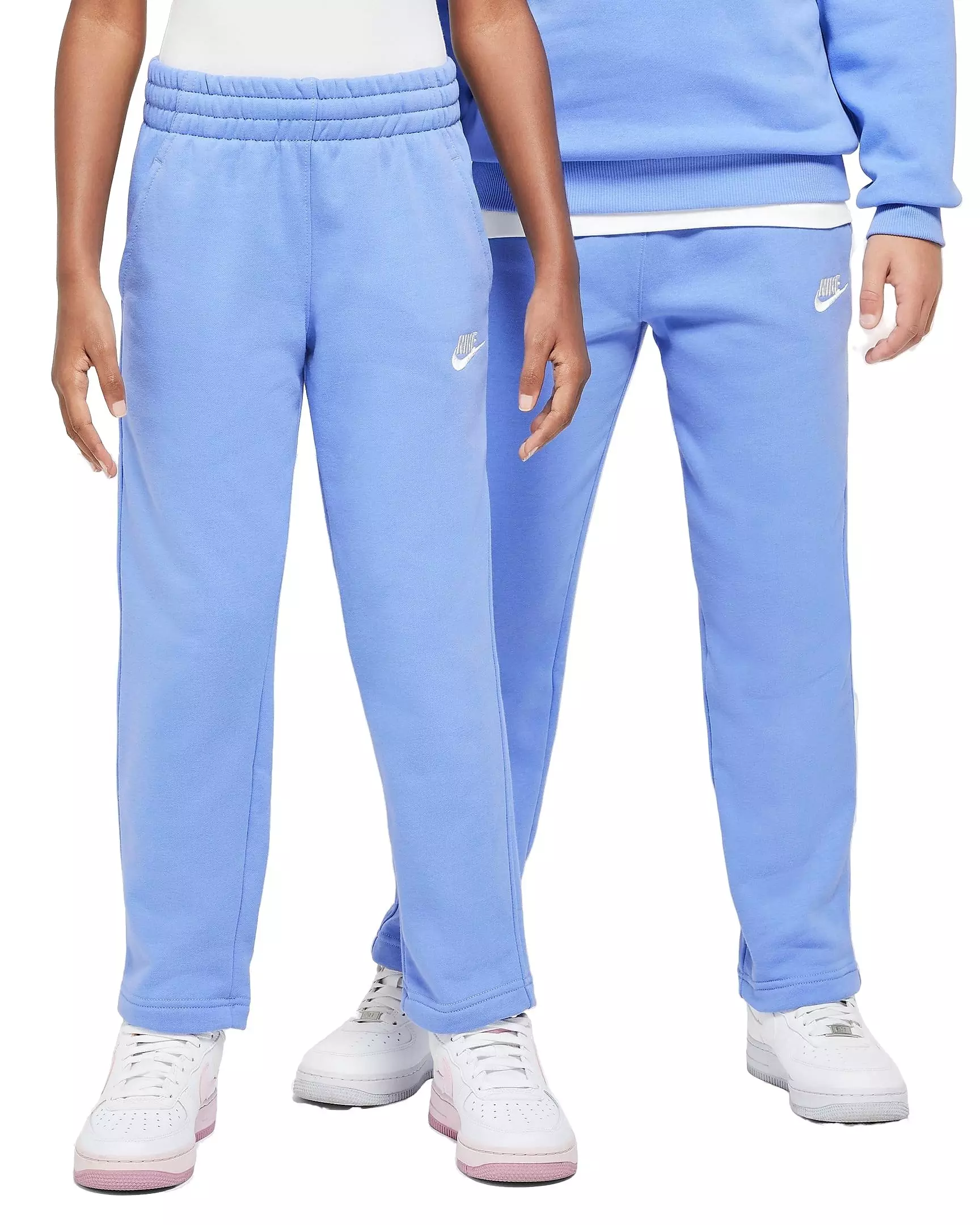 Run like the wind in these brushed fleece, Nike Big Kids' Sportswear Club Fleece Open-Hem Pants. Smooth on the outside, brushed soft on the inside, this lightweight fleece is an easy layer when you want a little extra warmth. Enjoy them whether you're on the court or in the classroom counting down the minutes till you can go play again.Features