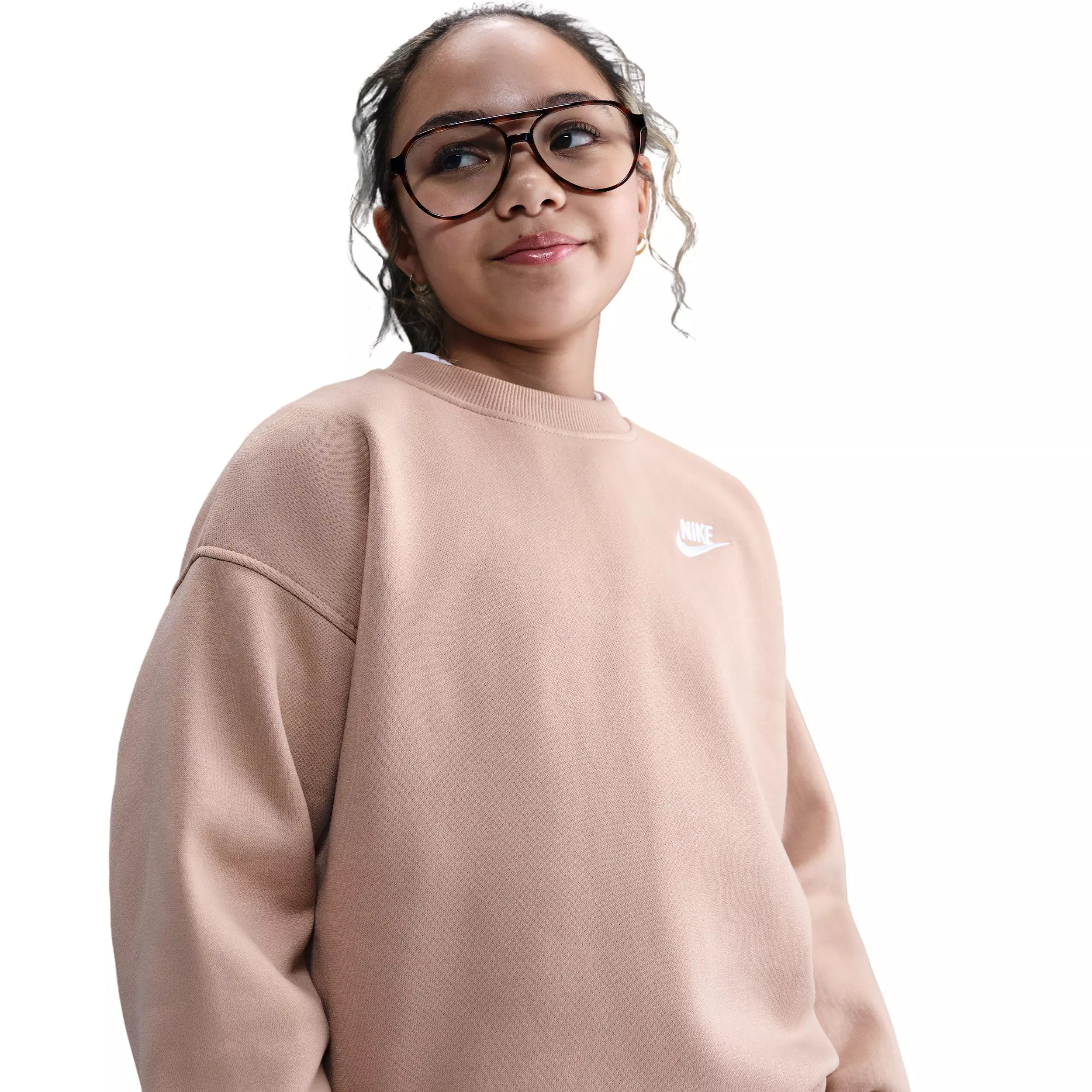 Wrap them in everyday comfort with the Nike Big Kids' Sportswear Club Fleece Oversized Sweatshirt - Brown. Lightweight fleece feels smooth on the outside and softly brushed on the inside, giving cozy warmth without the bulk.