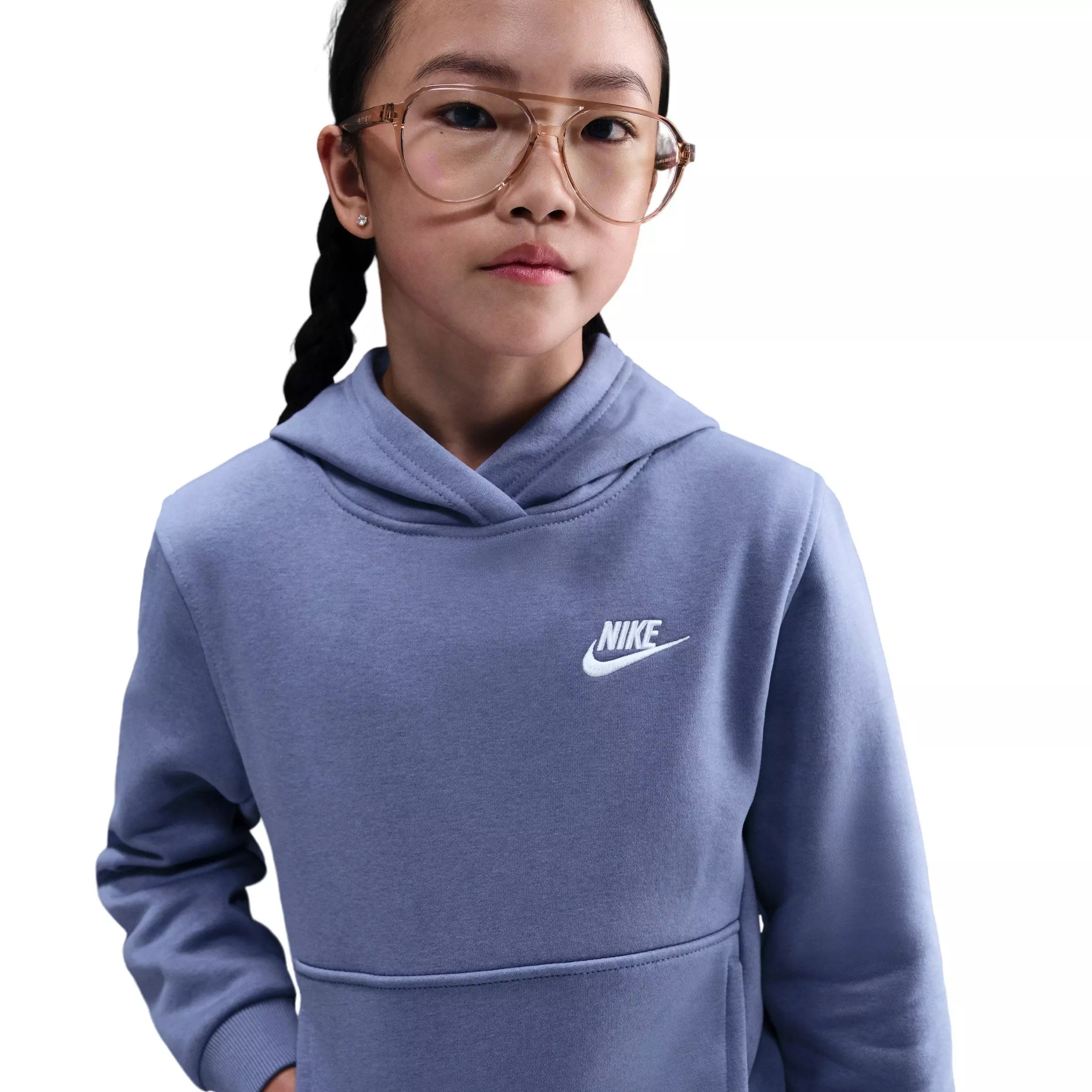What do we love about Club Fleece? Smooth on the outside, brushed soft on the inside, this lightweight Nike Big Kids' Sportswear Club Fleece Pullover Hoodie - Light Blue is an easy layer when you want a little extra warmth. Practically magic, this hoodie has been known to warm up cold recesses, take the chill out of winter football games and put a smile on anyone who wears it.Features