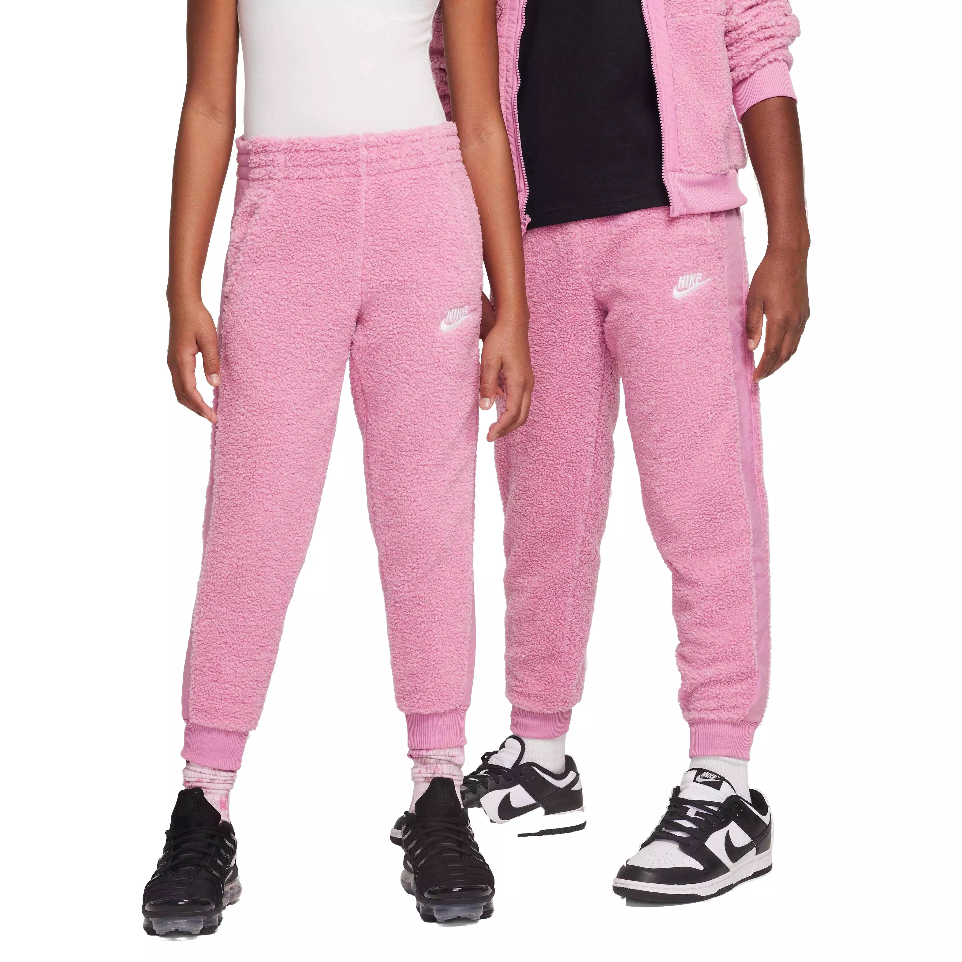 Combat cold weather with the help of these seriously soft Nike Big Kids' Sportswear Club Fleece Winterized​ Pants. Plush fleece has a thick, woolly texture that's super fun to wear (and touch!), and the crinkle woven taping on the sides and thick, stretchy ribbing on the cuffs makes them even better. Now you're ready for anything.Features