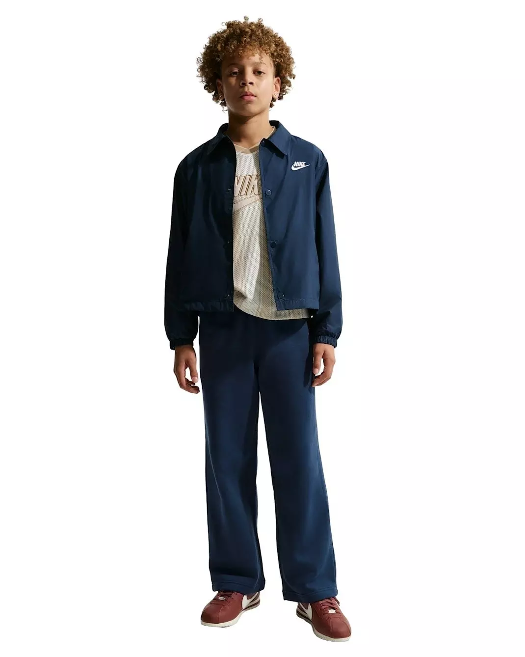 Join the cozy club with our Nike Big Kids' Sportswear Loose Open-Hem Pants - Blue. Easy to pair and layer, it's a cool-weather staple you can wear to the courts, the classroom or for easy weekends. A relaxed fit gives your look a laid-back vibe, all while draping perfectly over your favorite pair of kicks.Features