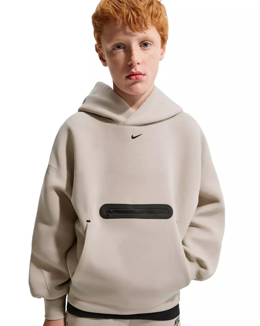 Say hello to a new era of Tech Fleece. Smooth both inside and out, our iconic lightweight Nike Big Kids' Sportswear Tech Fleece Oversized Pullover Hoodie - Beige gives you plenty of warmth without adding bulk. An oversized fit updates the traditional Tech Fleece silhouette with extra room for added comfort.Features