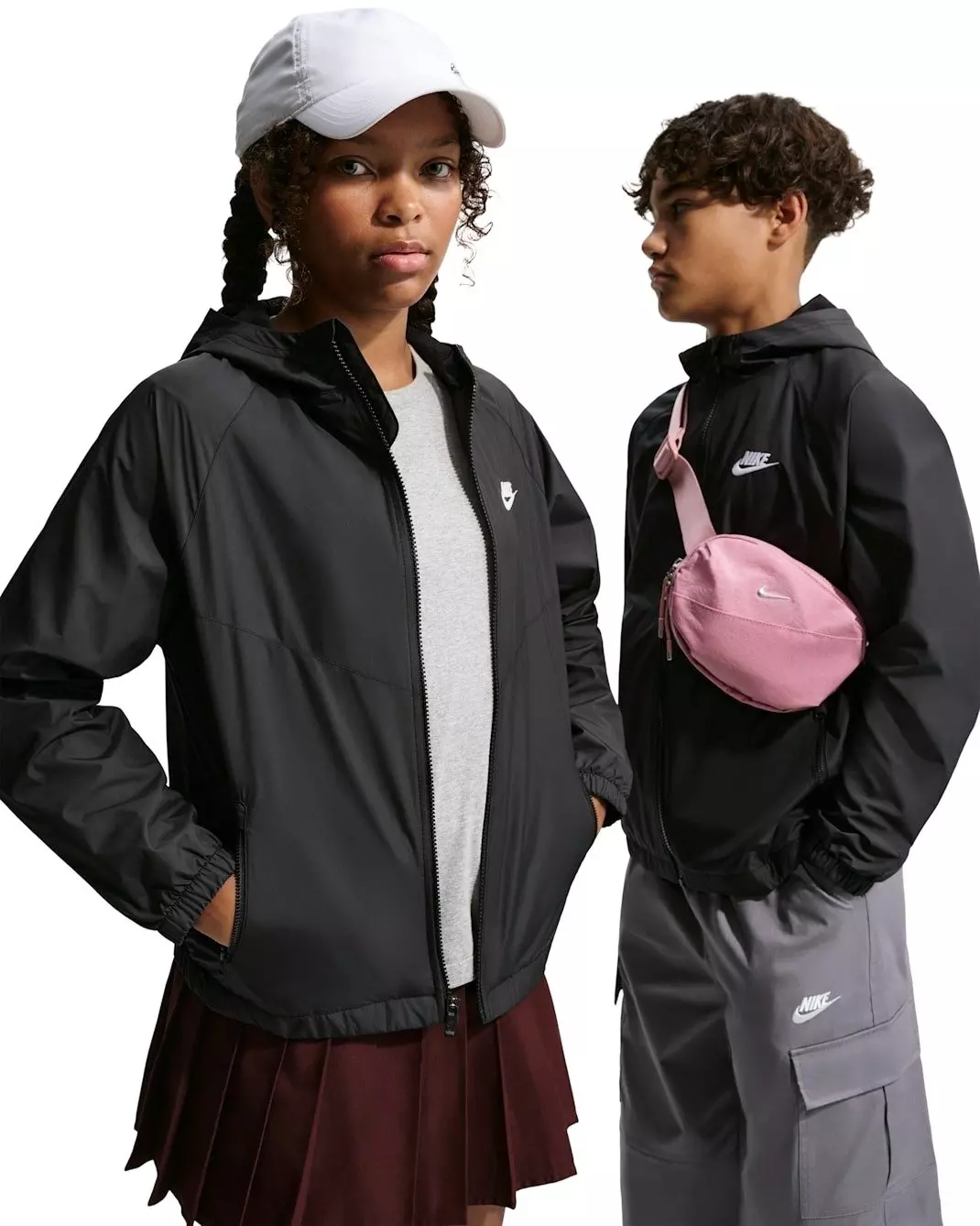 Face less-than-ideal weather in more-than-ideal gear. This lightweight Nike Big Kids' Sportswear Windrunner Hooded Repel Jacket - Black helps bead water so you can stay dryer for longer while you play, and zippered pockets keep your everyday treasures secure and within reach.Features