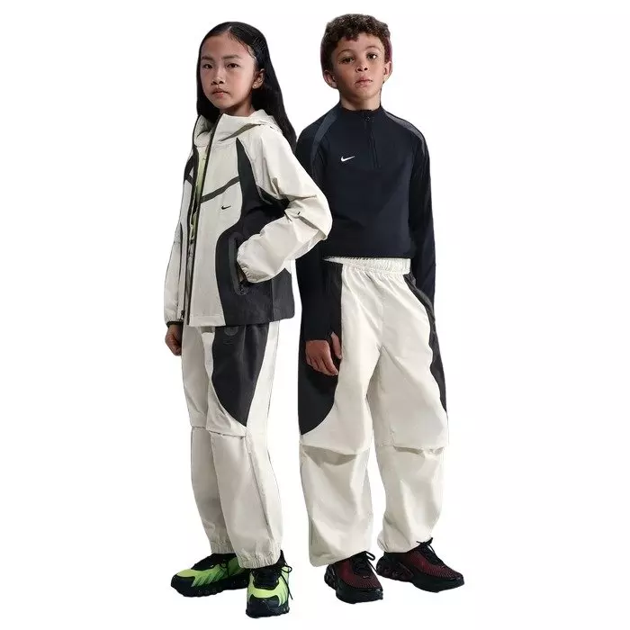 - Design: Roomy Nike Tech–inspired trousers feature taped pockets and articulated knees.