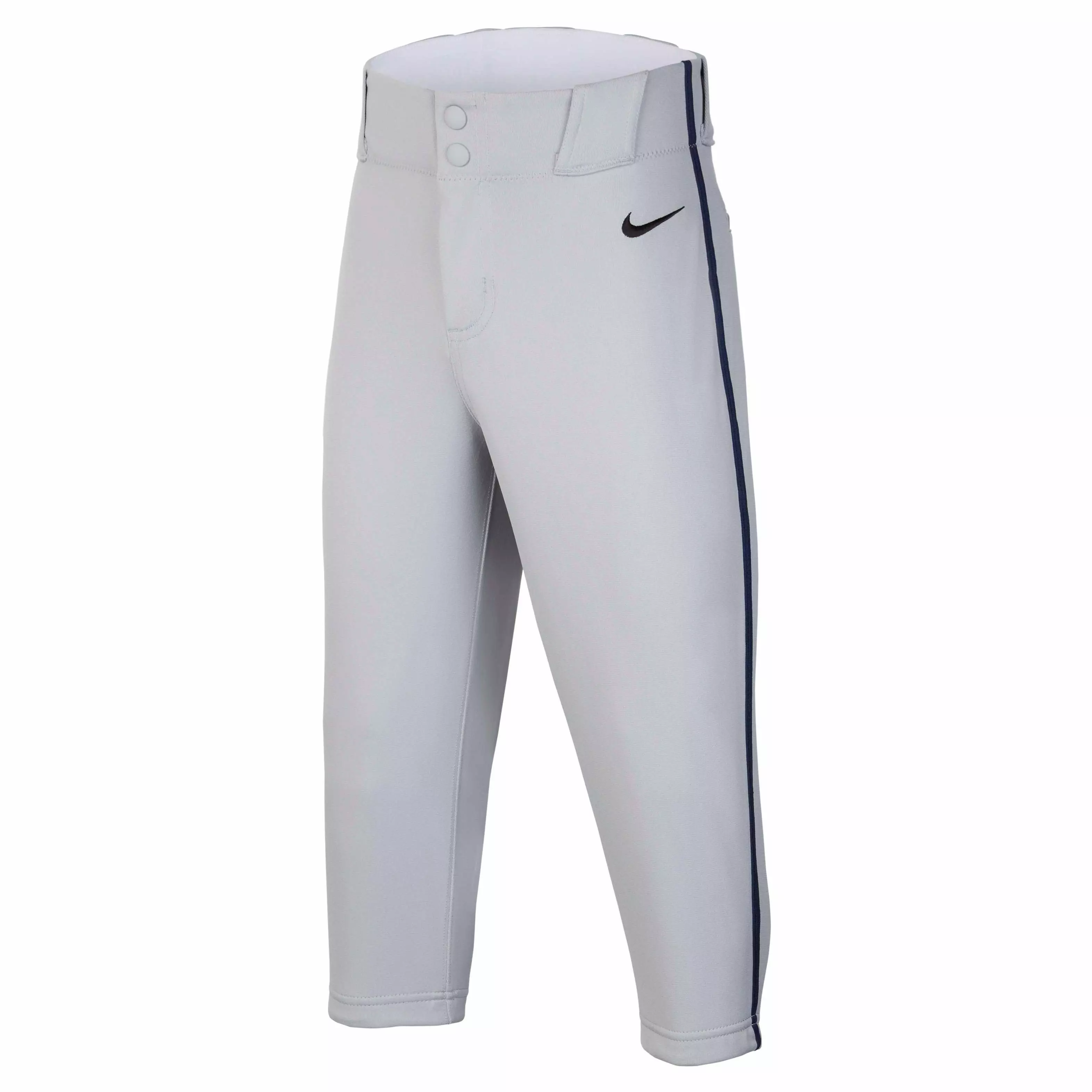 Focus on the game in our slim-fitting grey & navy Nike Big Kids' Vapor Select 2 High-Piped Baseball Pants. Made from breathable knit, they have grip around the waistband and cuffs to help hold them in place during all-out play.Features