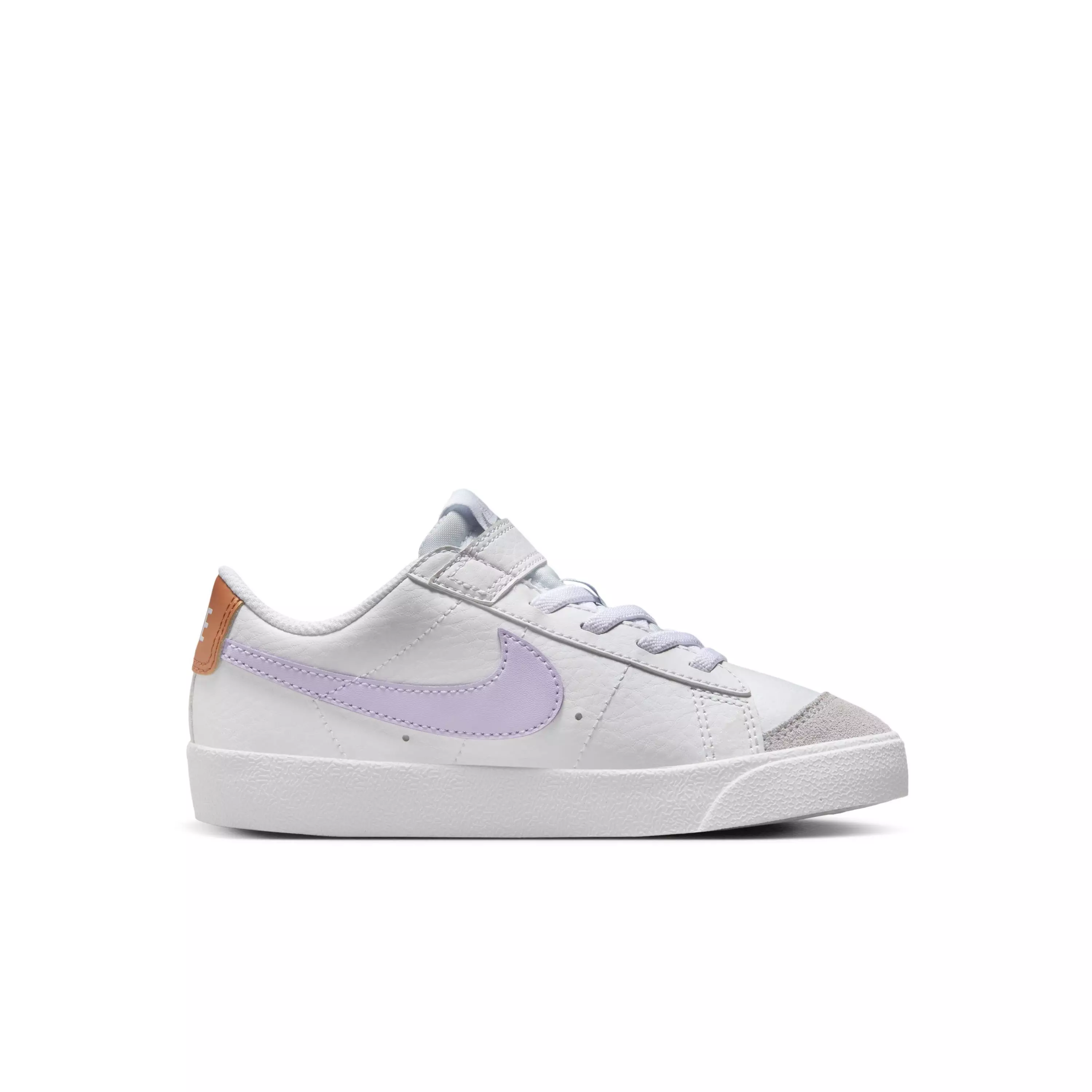 The Nike Blazer Low '77 "White/Barely Grape/Metallic Copper" Preschool Girls' Shoe has transcended the basketball court to streetwear and is ready to land on your kiddo's feet. Tuck their toes into this icon for an old-school look that keeps little feet comfy on all their adventures.Features