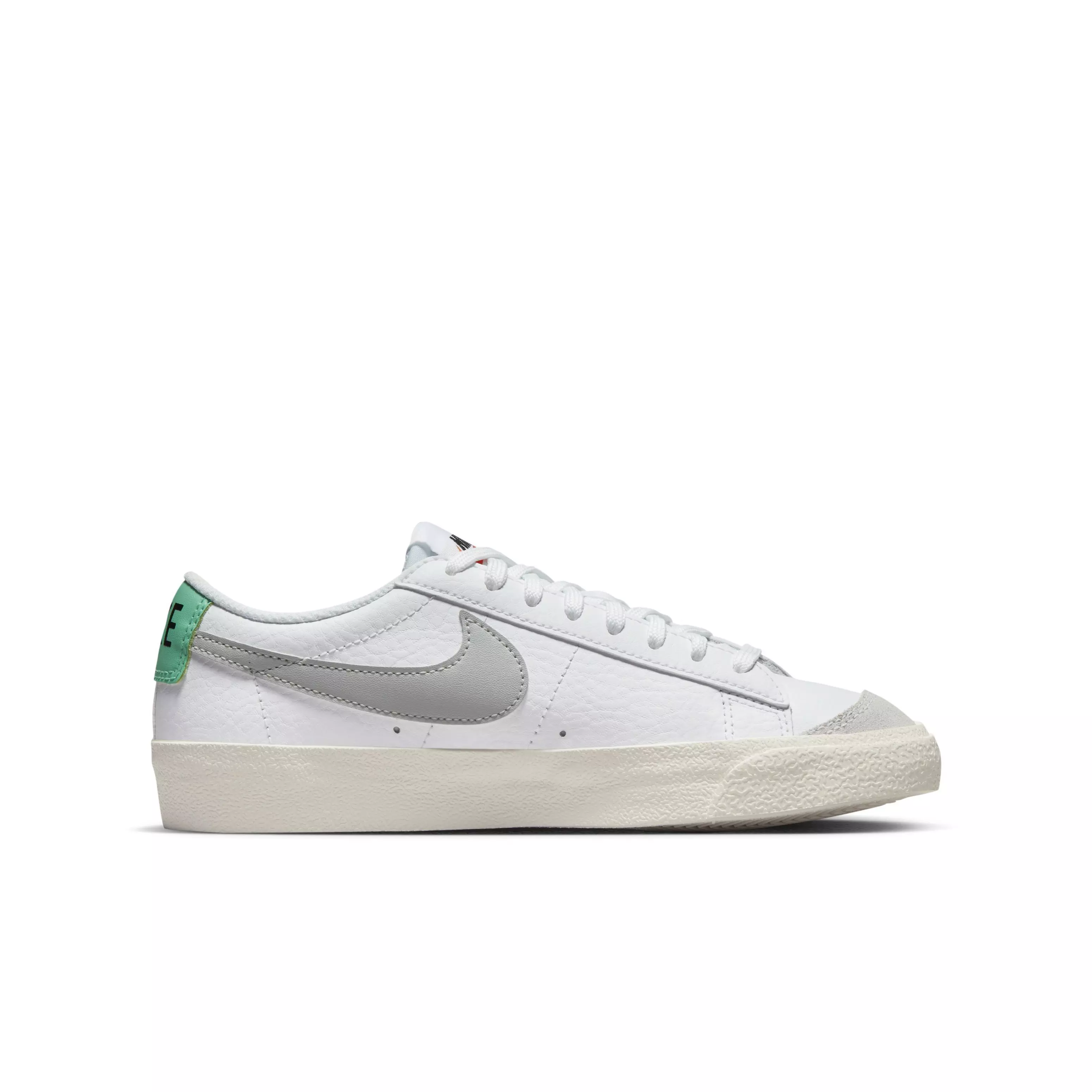 The Nike Blazer Low '77 "White/Grey Fog/Light Menta/Sail" Grade School Boys' Shoe has transcended the basketball court to become an everyday classic and is ready to land on your feet. Tuck your toes into this icon for an old-school look that keeps you comfy on all your adventures.Features