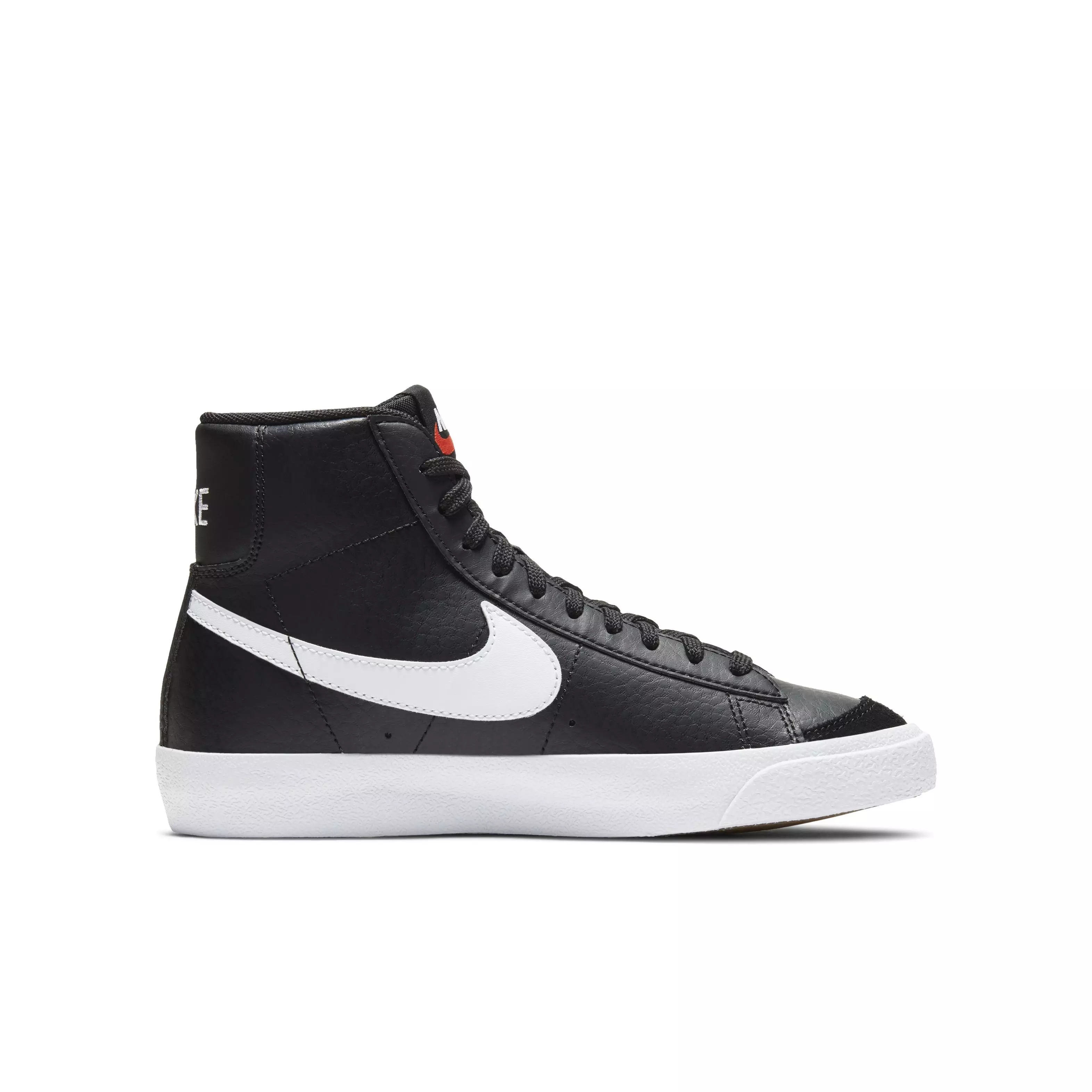 The Nike Blazer Mid '77 "Black" Grade School Boys' Shoe blends classic basketball style with a vintage midsole finish and striking throwback design that captures retro flair.