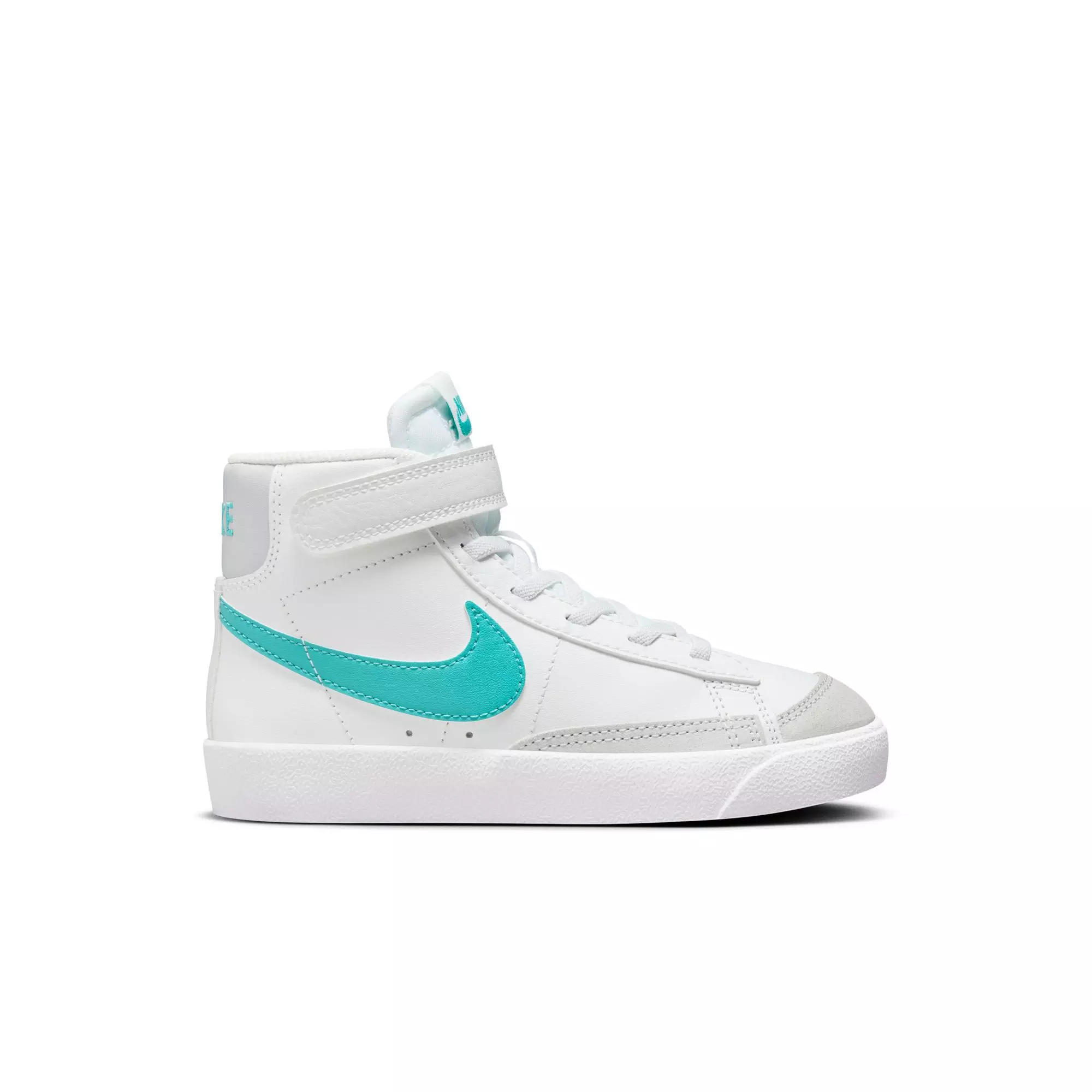 A legend on the basketball court in the late '70s, the Nike Blazer Mid '77 "Summit White/Dusty Cactus/White" Preschool Boys' Shoe is now an icon off the court with its padded mid-top collar and durable design. Add in elastic laces and you have kicks that are ready for playtime.Features