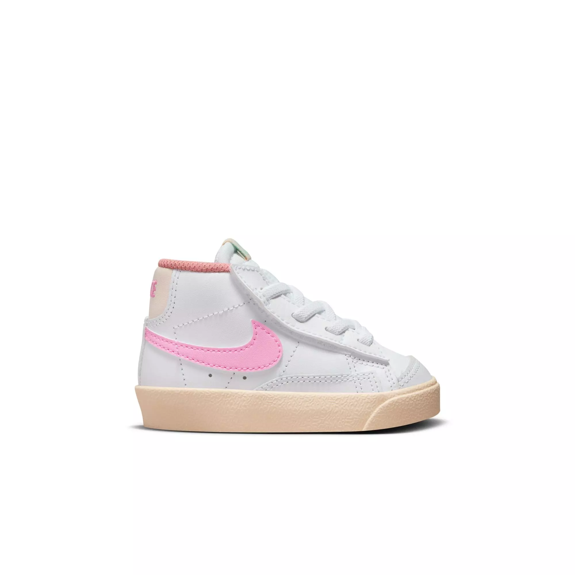 RETRO LOOK. TRUSTED COMFORT.Your little baller can rule the kicks game in the Nike Blazer Mid '77 "White/Pink Spell/Guava Ice/Jade Ice" Toddler Girls' Shoe. The vintage look and comfortable feel help this court classic transcend the hardwood as a legend of street style.