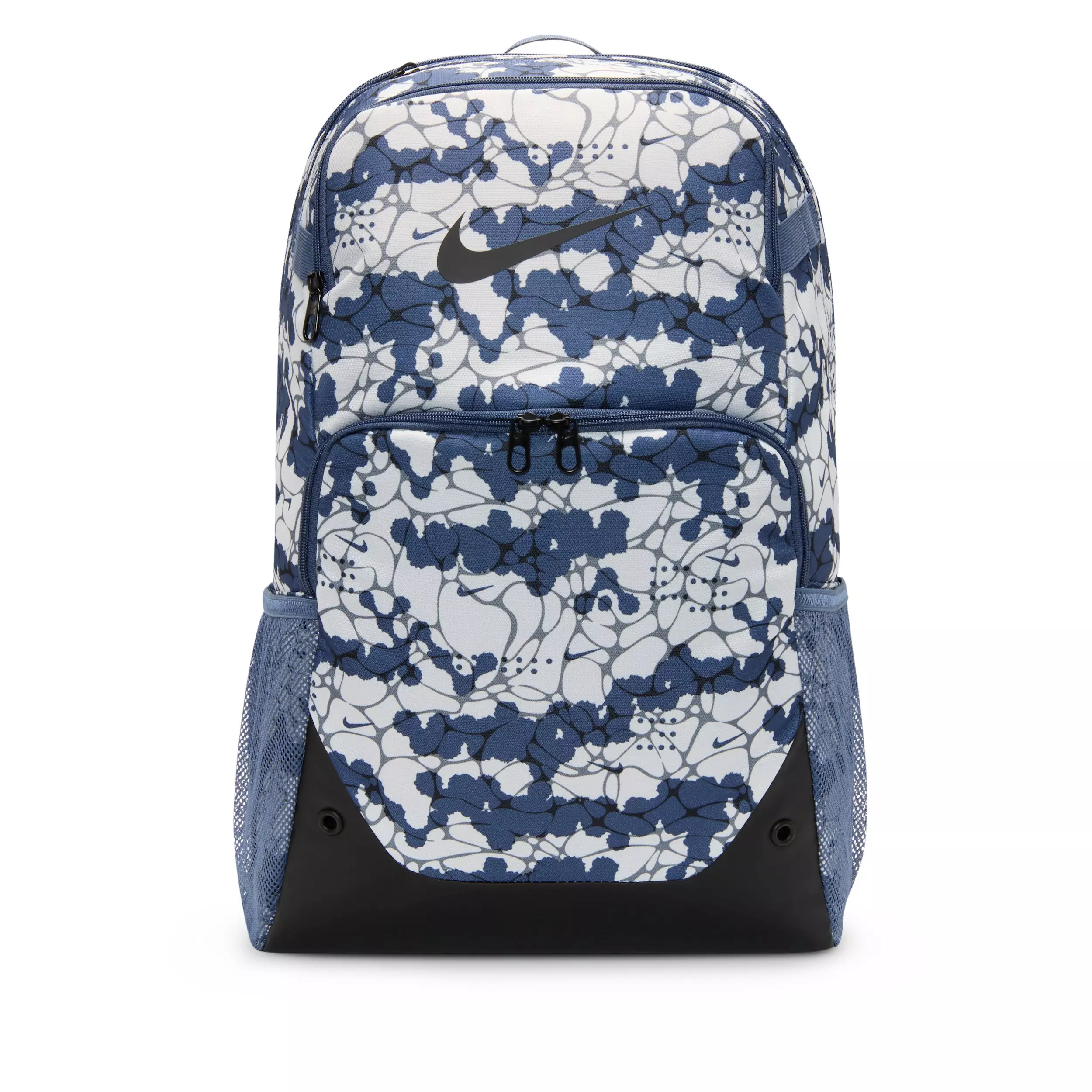 For your extra-large hauls the Nike Brasilia Extra Large All Over Print Backpack - Diffused Blue/Black/Black features a zipped main compartment for bigger gear and an internal laptop sleeve with an organizational panel. With this many pockets there's no excuse to leave something behind.Features