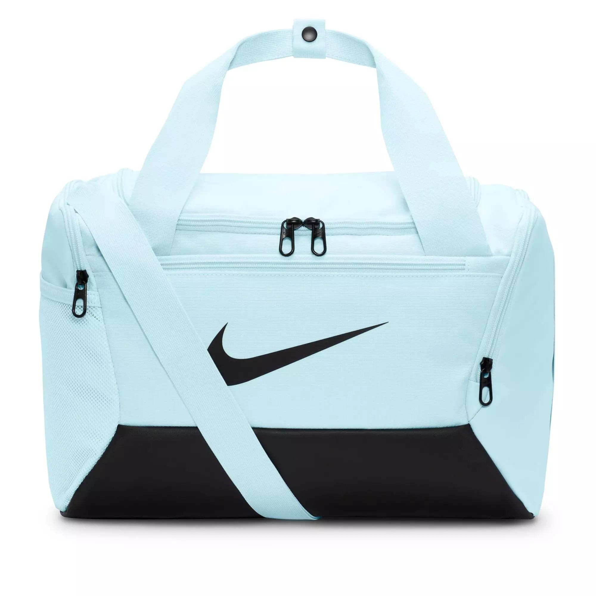 Good things come in small packages, especially when that package is the Nike Brasilla 9.5 Training Duffel Bag Extra Small - Blue. Pack your essentials in its main compartment and keep shoes and sweaty clothes separated in the side compartment. Inner and outer pockets organize smaller items efficiently.