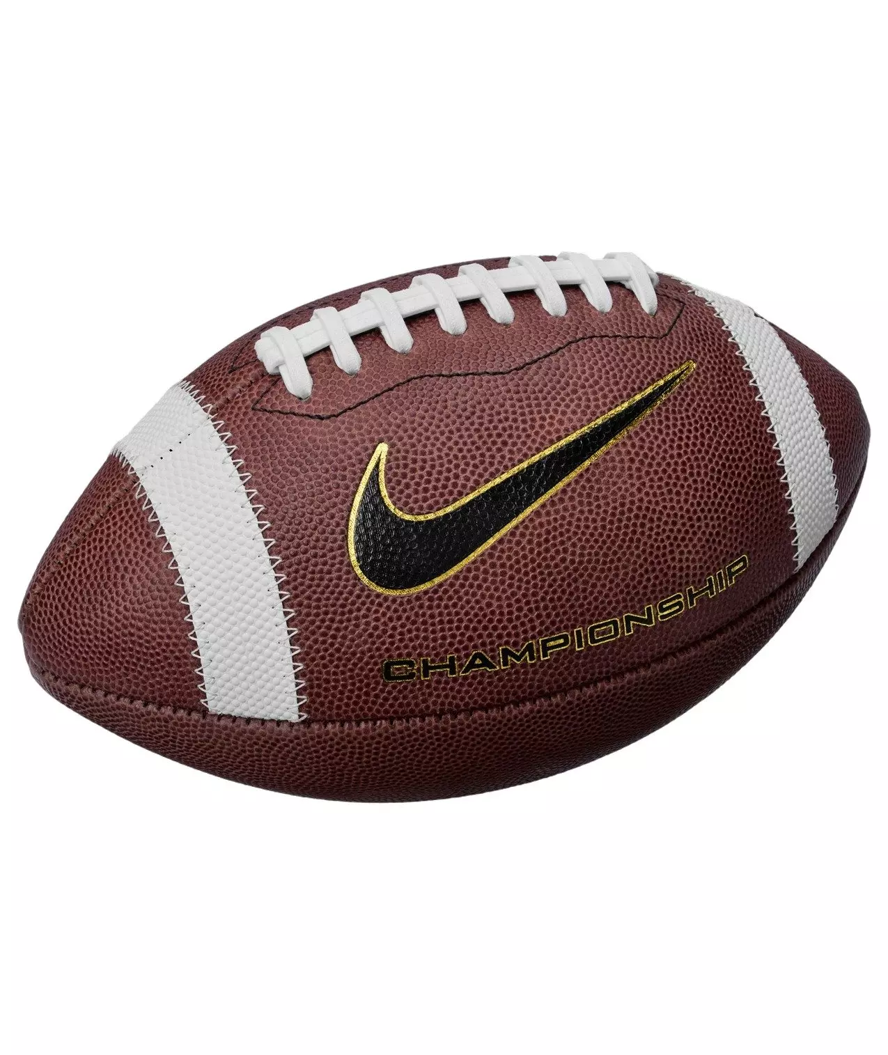 Kick off your game using the official ball of over 250 collegiate programs. Made from soft leather that breaks in fast, it has a smaller shape for better hand feel and tight spirals. A tacky pebbled texture helps provide consistent ball control while suede laces help ensure long-lasting grip with Nike Championship Junior Football-Brown/White.Features