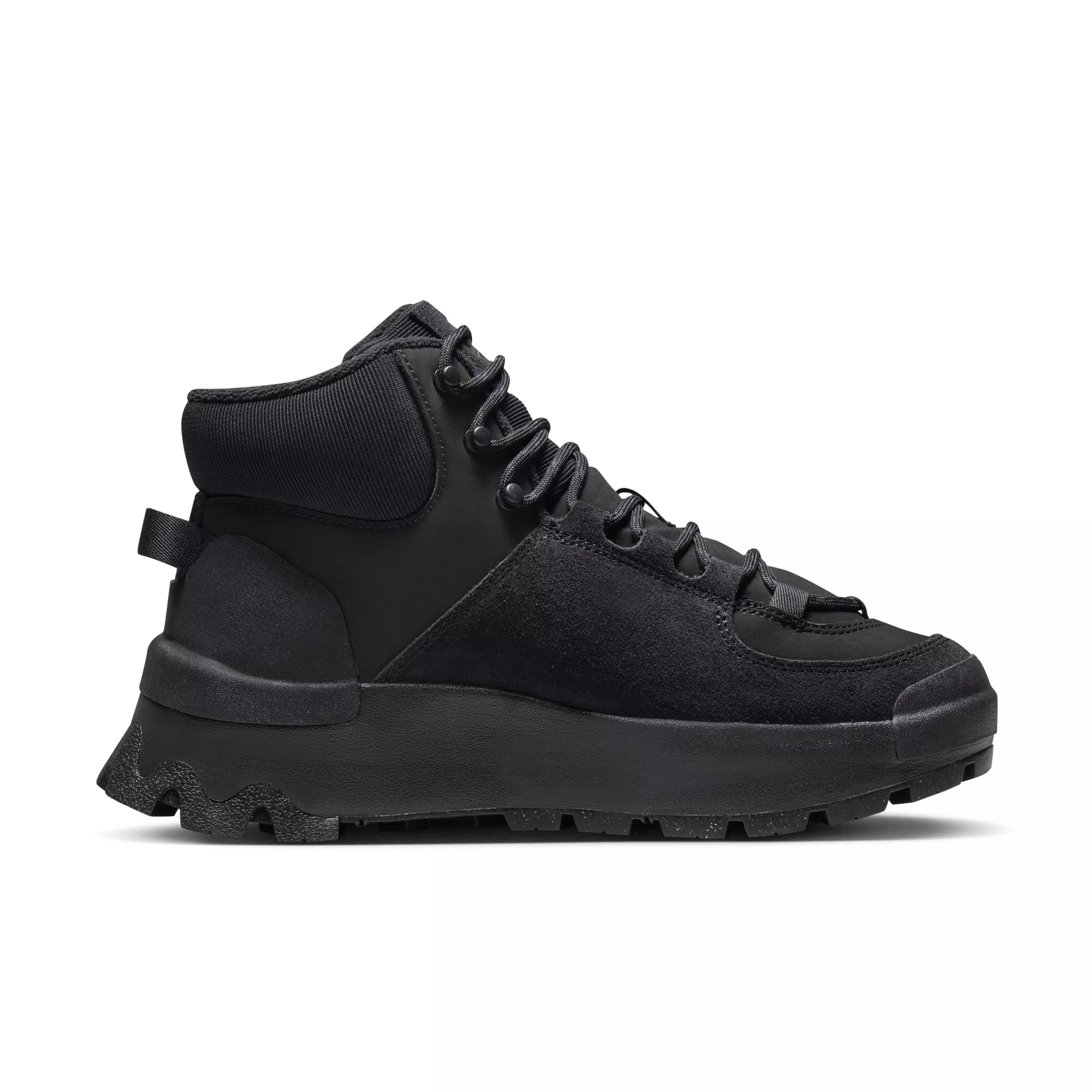Ready for winter matinées and cabin getaways? Get going in the Nike City Classic "Black/Black" Women's Boot. Designed specifically for low-profile feet, the slim toe box and sculpted collar keep them flexible and comfortable. And because we know you've got places to be, the rugged, trail-inspired tread gives your style traction all the way to that weekend camping trip with friends.Features