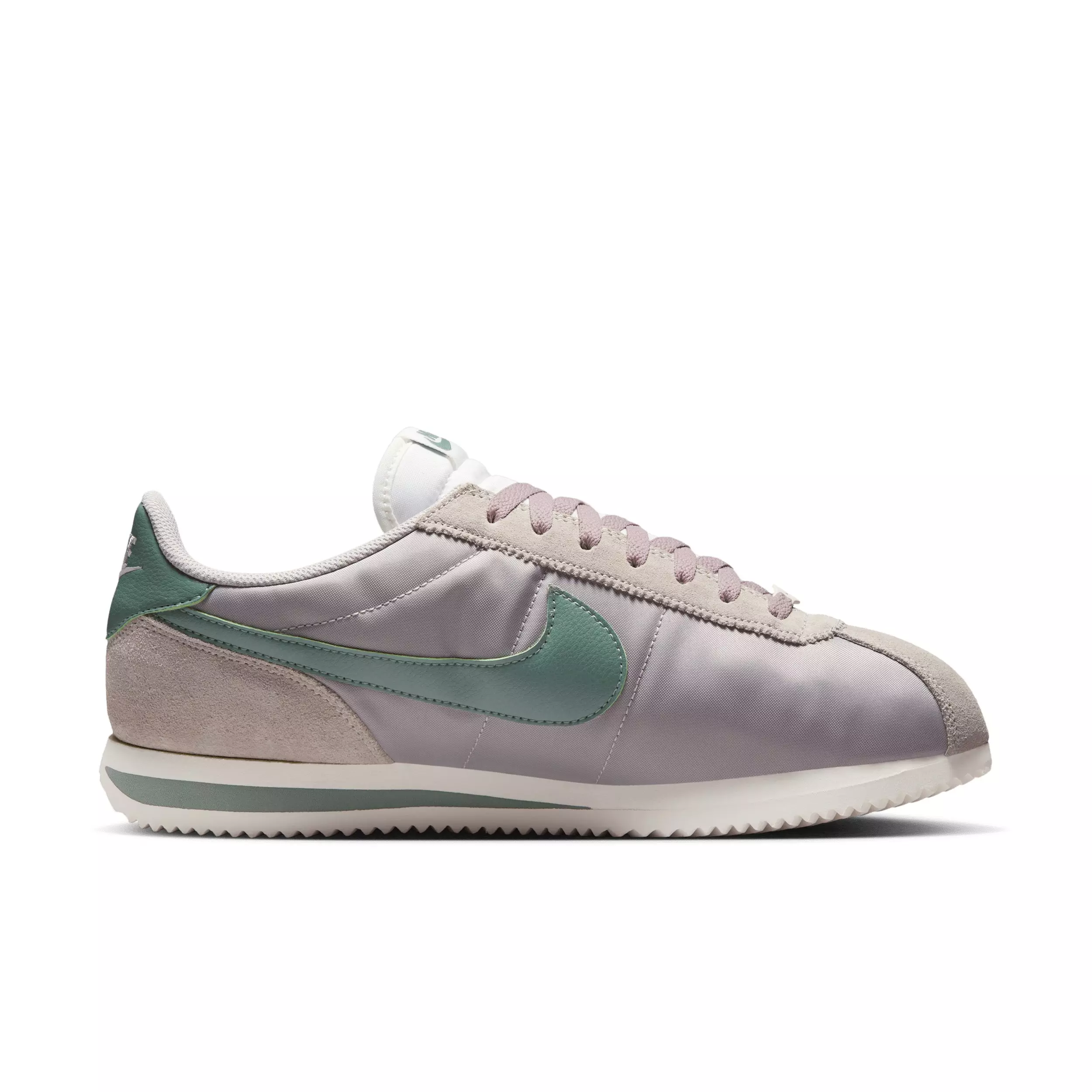 You spoke. We listened. Based on your feedback, we've revamped the original Nike Cortez Textile "College Grey/Sail/Clay Green" Men's Shoe while still keeping the retro appeal you know and love. This nylon and suede edition features a wider toe area and firmer side panels, so you can comfortably wear them day in and day out without any warping. Cortez fans—this one’s for you.Features