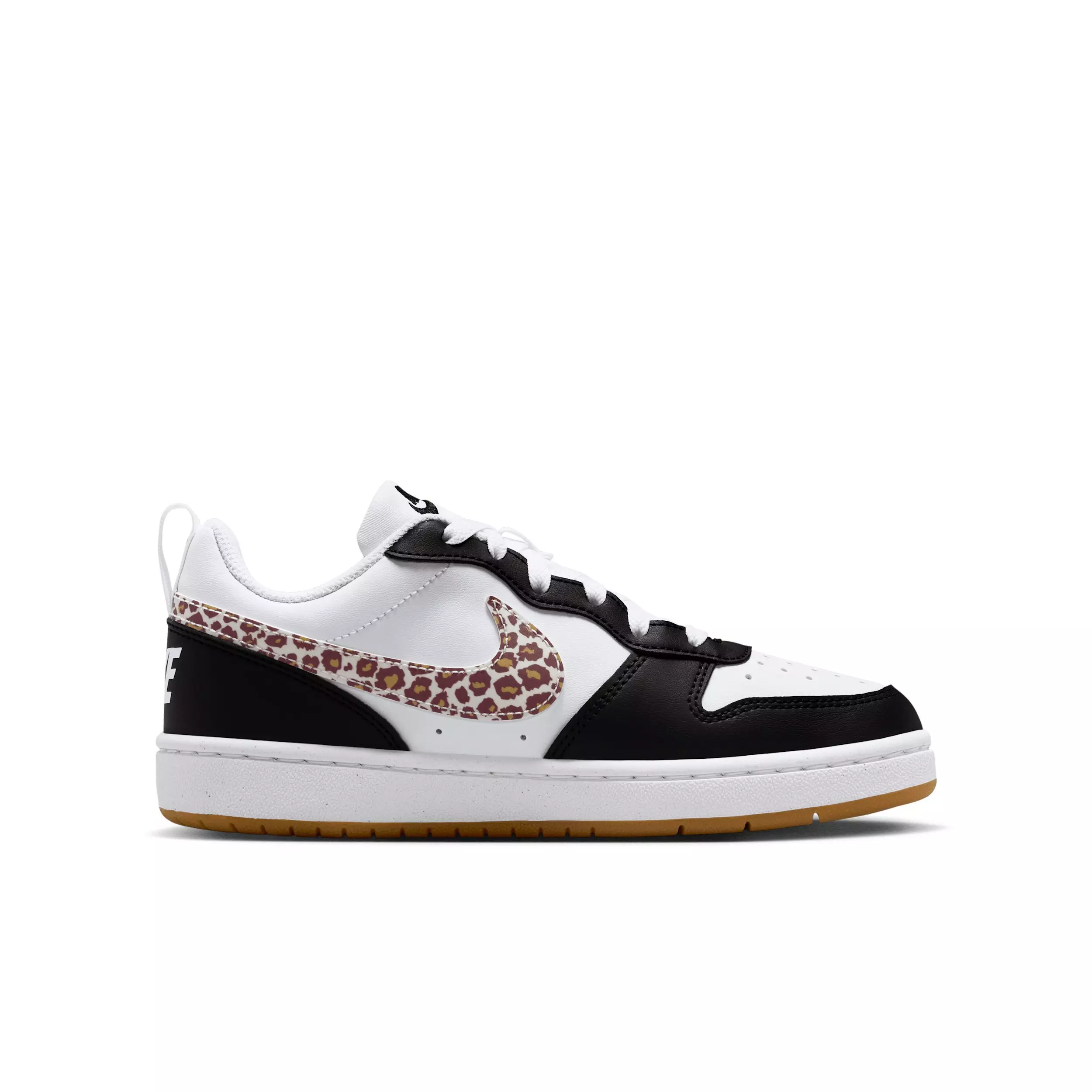 Inspired by retro-hooping style, the Nike Court Borough Low "Black/White/Gum Medium Brown/White" Grade School Girls' Shoe is made with synthetic leather for an old-school feel and reimagined with modern comfort, like extra room in the toe.Features
