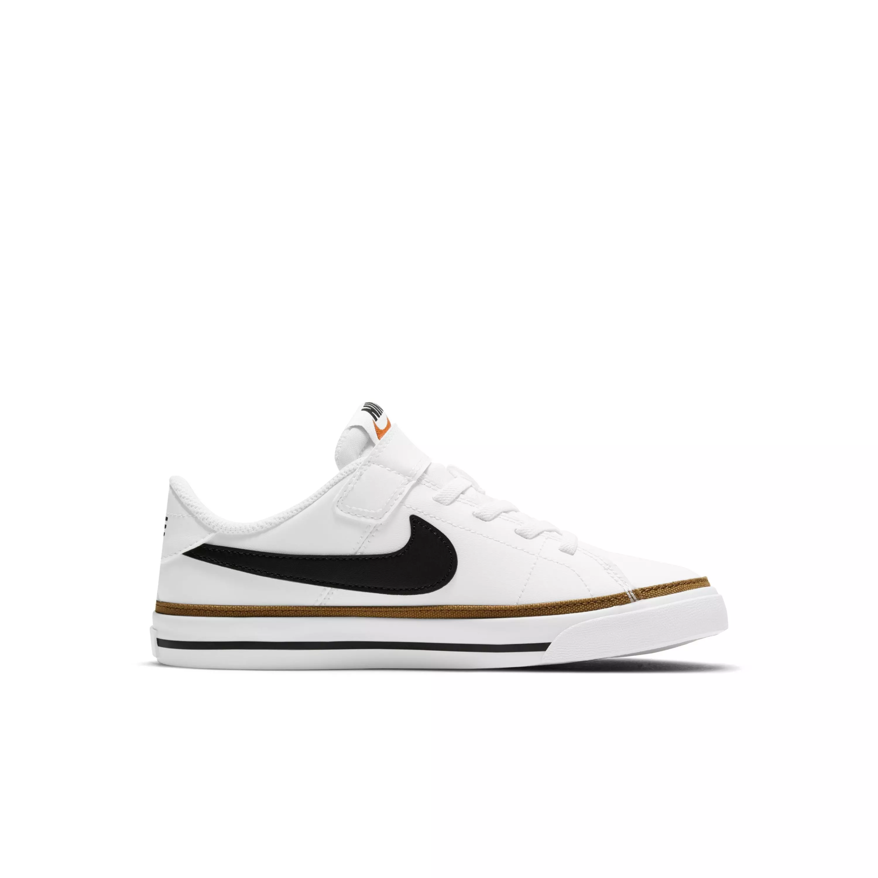 The Nike Court Legacy "White/Desert Ochre/Gum Light Brown/Black" Preschool Girls' Shoe blends timeless tennis style with everyday durability. Heritage stitching strengthens the structure, while the cushioned insole and soft textile lining deliver all-day comfort. A low-profile silhouette allows for easy movement, and the sturdy rubber outsole ensures dependable traction on multiple surfaces.