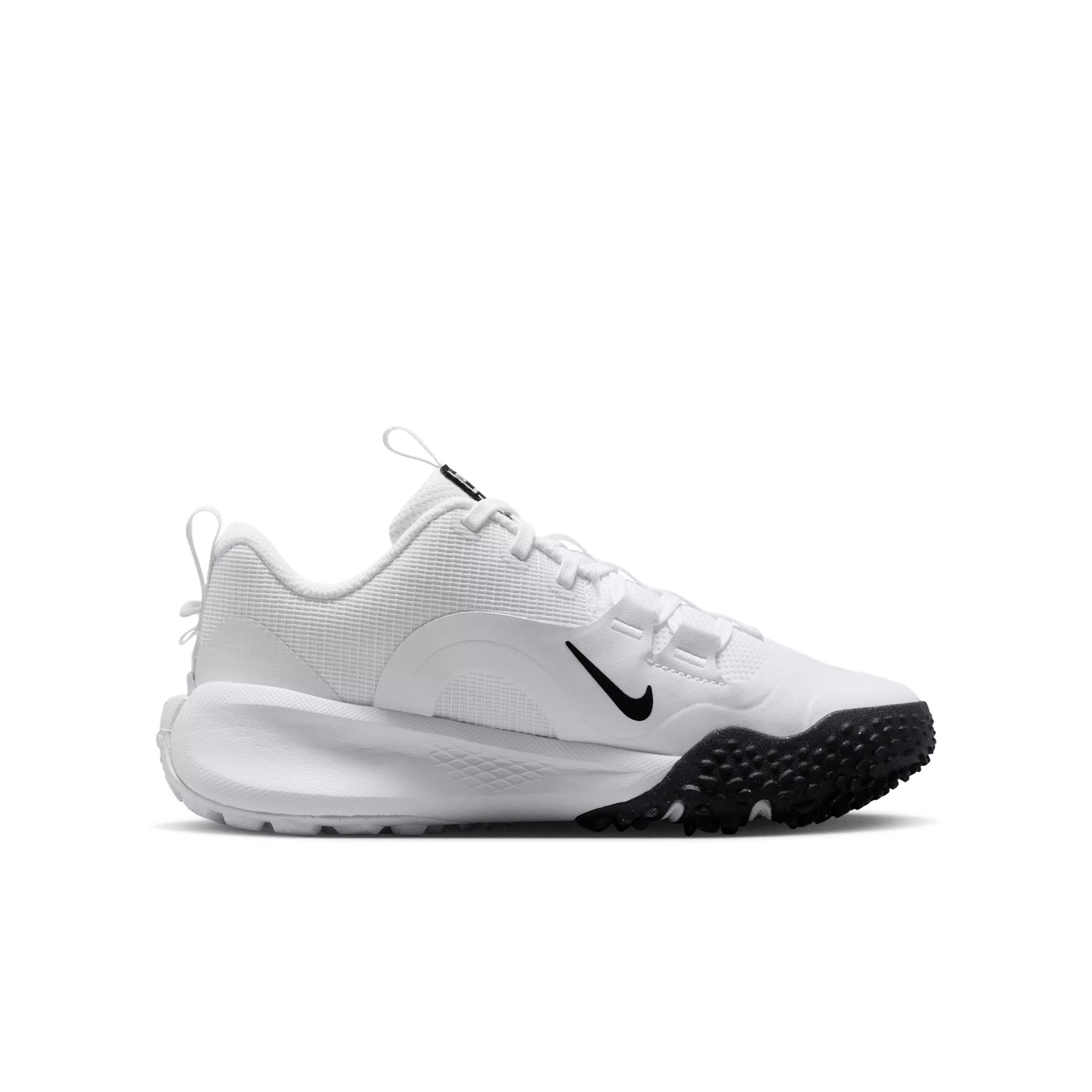 Dominate the diamond, the gridiron, or both in the Nike Cross Turf "White/Black" Grade School Boys' Baseball Shoe. It’s made for sudden, explosive multidirectional movements thanks to a unique, grippy outsole You can carry this do-it-all shoe from sport to sport or even lean on its responsive ethos when training in the off-season.