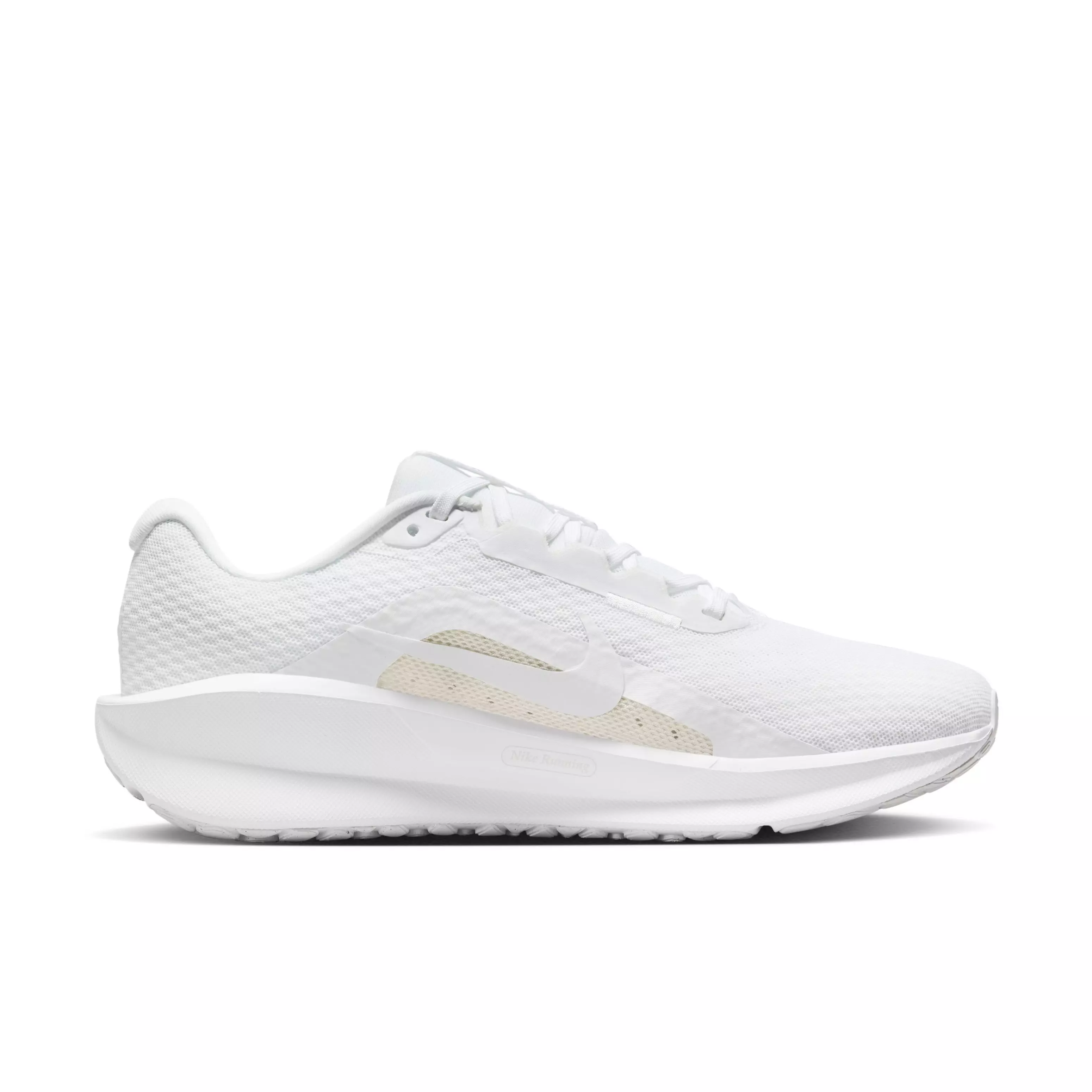 The Nike Downshifter 13 "White/Platinum Tint/White" Women's Running Shoe features a revamped upper that offers breathability and support. Enhanced cushioning absorbs impact while reinforced overlays boost durability. Its lightweight design improves agility and comfort during each stride.