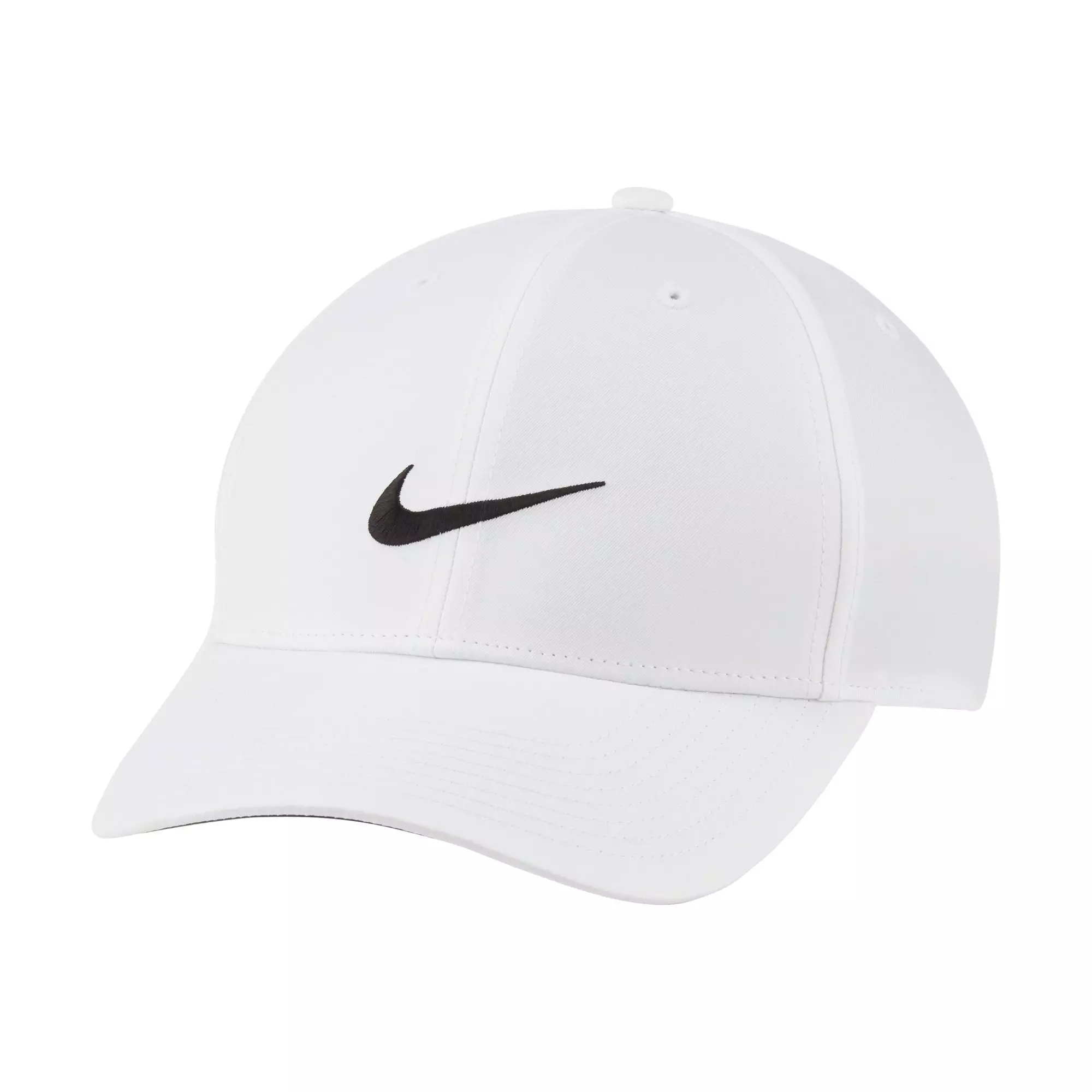 The Nike Dri-FIT Legacy91 Tech Adjustable Hat - White is a comfortable course staple with a metal buckle closure and a soft sweatband.