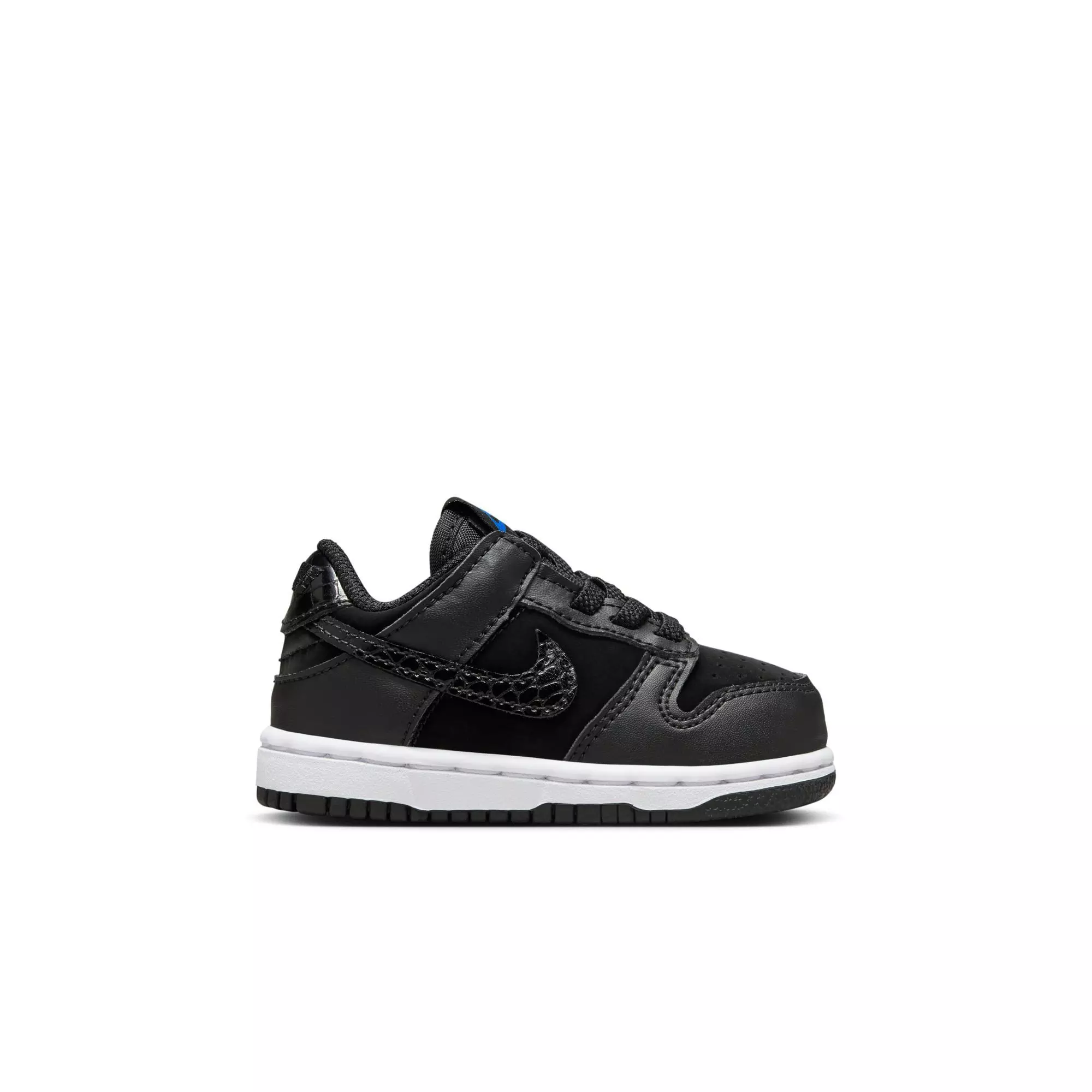 True to the icon, the Nike Dunk Low "Black/White/Game Royal" Toddler Kids' Shoe revives mid-80s hoops style with super-durable construction and a special-edition colorway. Tumbled leather panels pair with matte croc overlays to elevate the look while preserving the heritage silhouette.