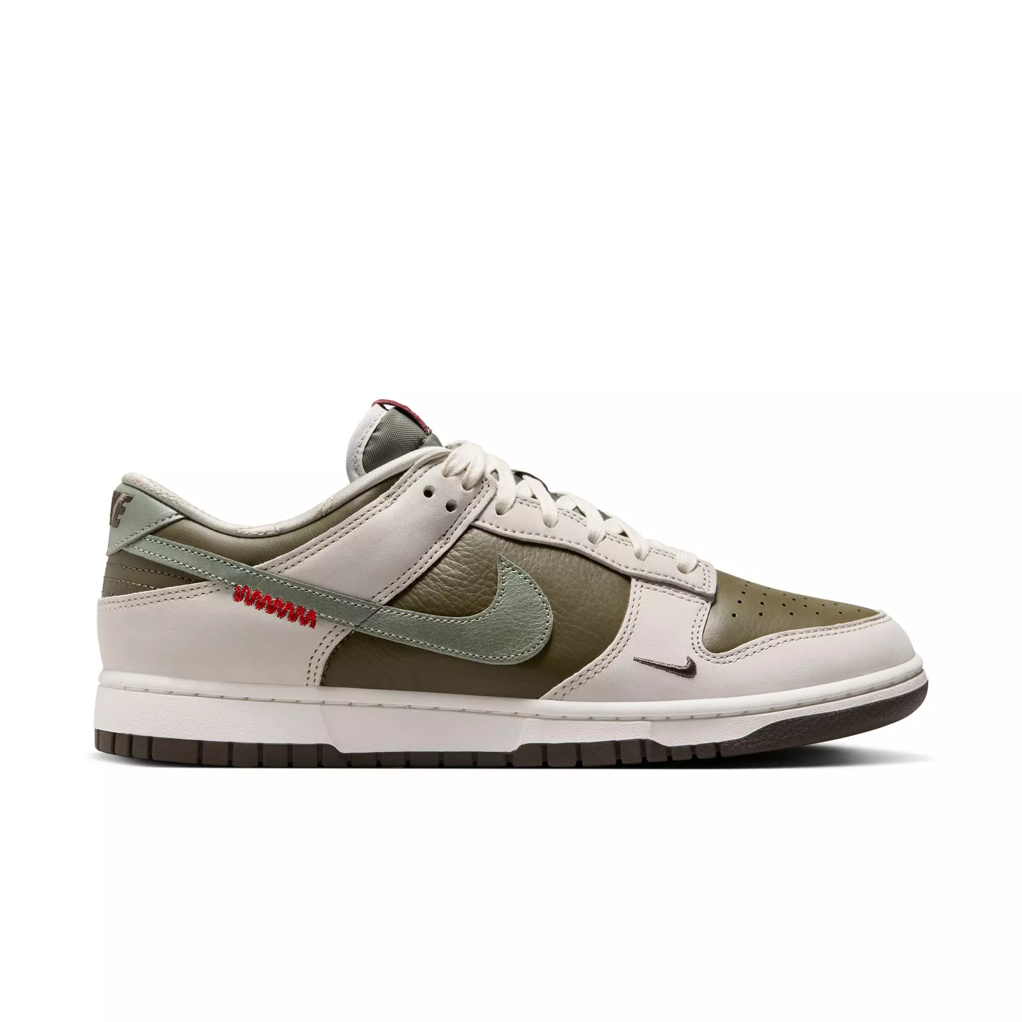 The Nike Dunk Low Retro "Medium Olive/Jade Horizon/Sail/Ironstone" Men's Shoe celebrates the Lunar New Year with design details inspired by the snake's coiled shape. This classic silhouette anchors each step in heritage style and cultural symbolism.