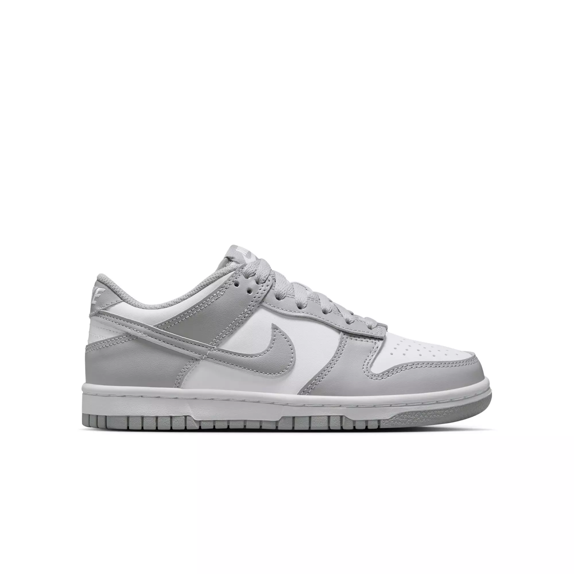 Originally designed to play basketball but adopted by skaters, the Nike Dunk Low "White/Lt Smoke Grey" Grade School Boys' Shoe helped define sneaker culture. This mid-'80s silhouette blends classic lines with updated cushioning.