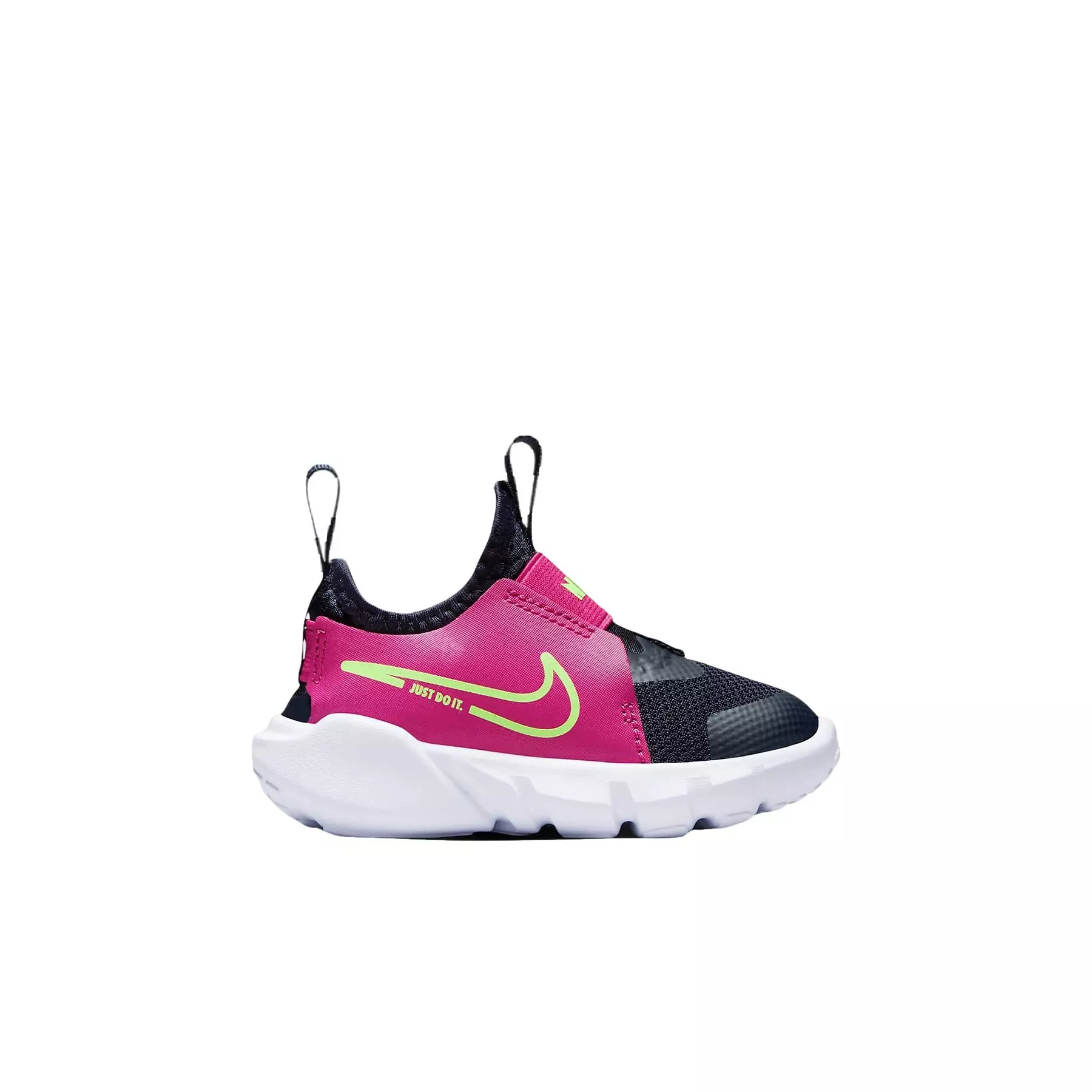The Nike Flex Runner 2 "Dark Obsidian/Fireberry/White/Lime Blast" Infant Girls' Running Shoe keeps little feet moving with an easy slip-on, lace-free design. A snug bootie fit with elastic straps and pull tabs makes on-and-off simple, while soft foam cushioning helps keep every step comfy during playtime.