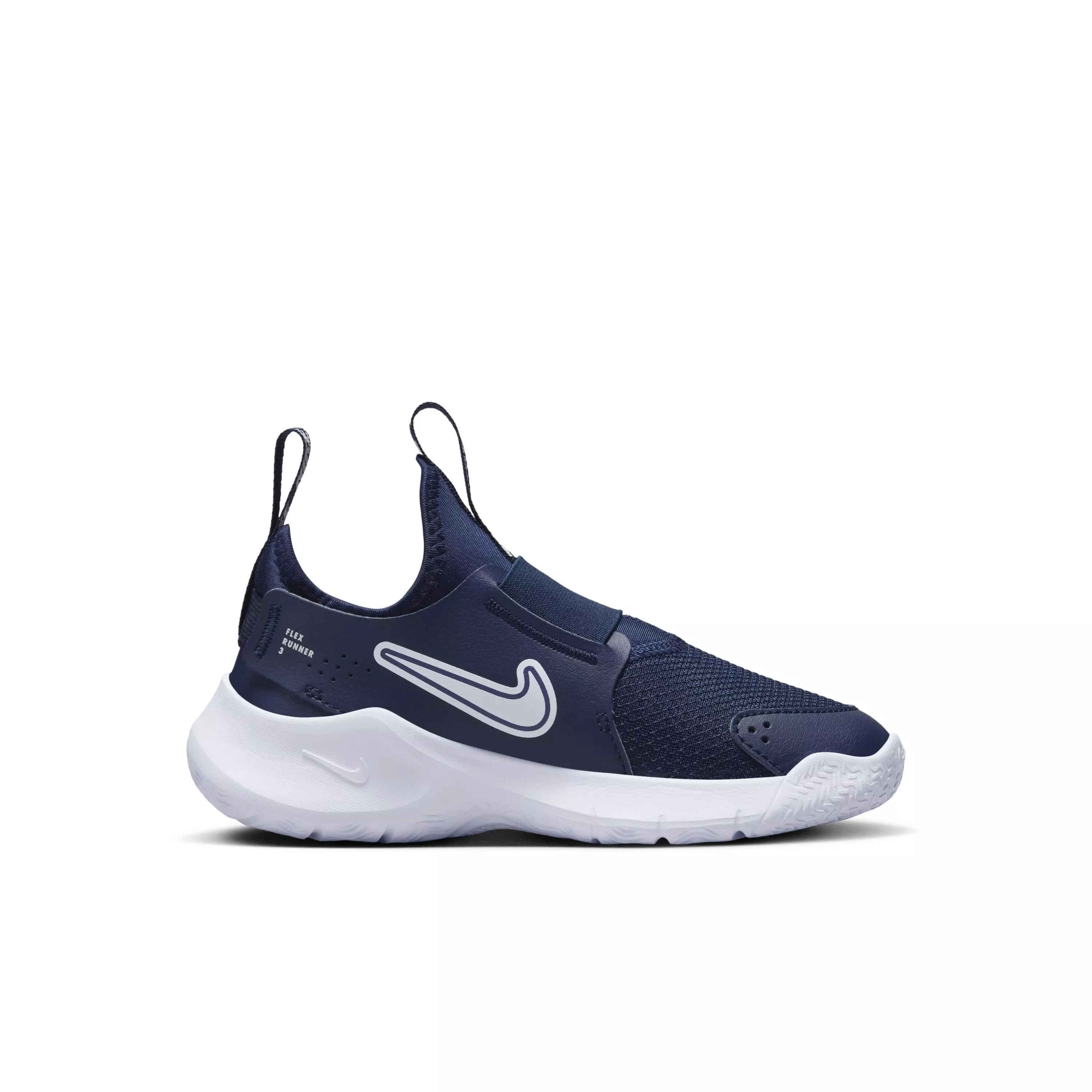 The Nike Flex Runner 3 "Midnight Navy/White" Preschool Boys' Running Shoe pairs a stretchy bootie design with a flexible outsole to enable all-day play. It delivers grippy traction across playground surfaces and sports courts.