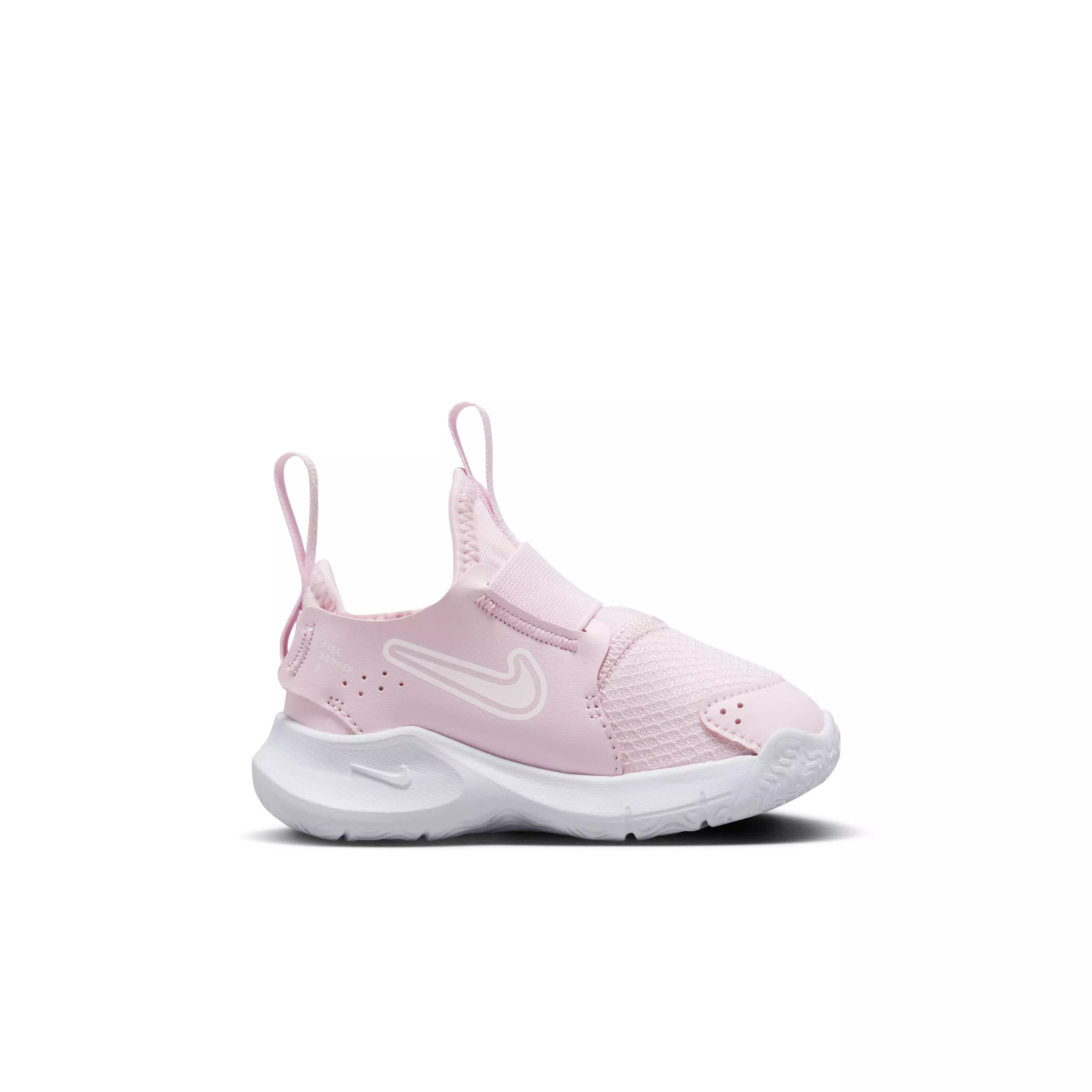 Made for little movers, the Nike Flex Runner 3 "Pink Foam/White" Infant Girls' Running Shoe slips on fast and stays comfy. A stretchy bootie hugs tiny feet, while a flexible outsole bends with every step for natural movement and confident play.