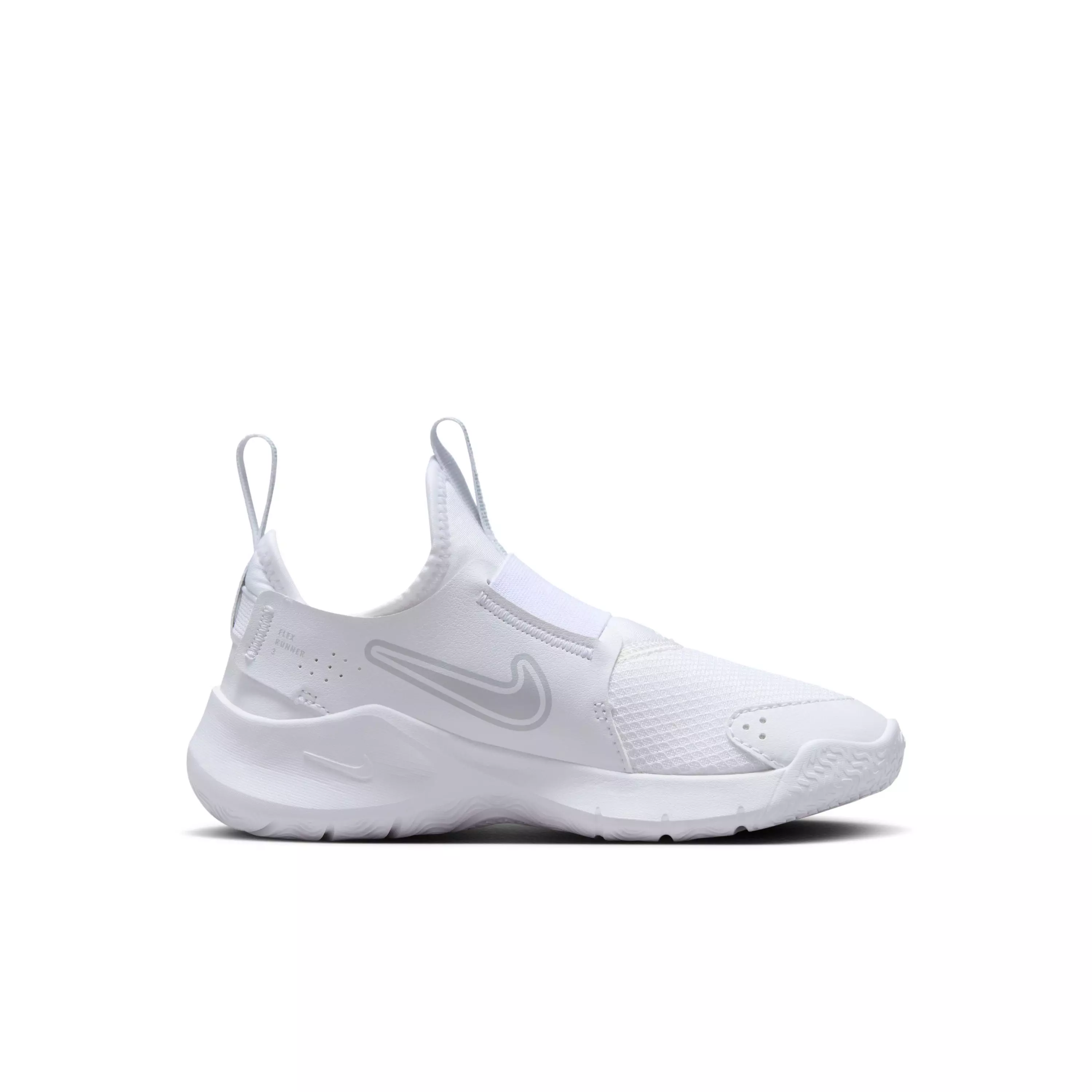 Running shoes made easy! Made for kids who love to play all day, the Nike Flex Runner 3 "White/White/Pure Platinum" Preschool Boys' Running Shoe pairs a stretchy bootie design with a flexible outsole and grippy traction. No laces mean they're super quick to slip on and off. So, who's ready to race?Features