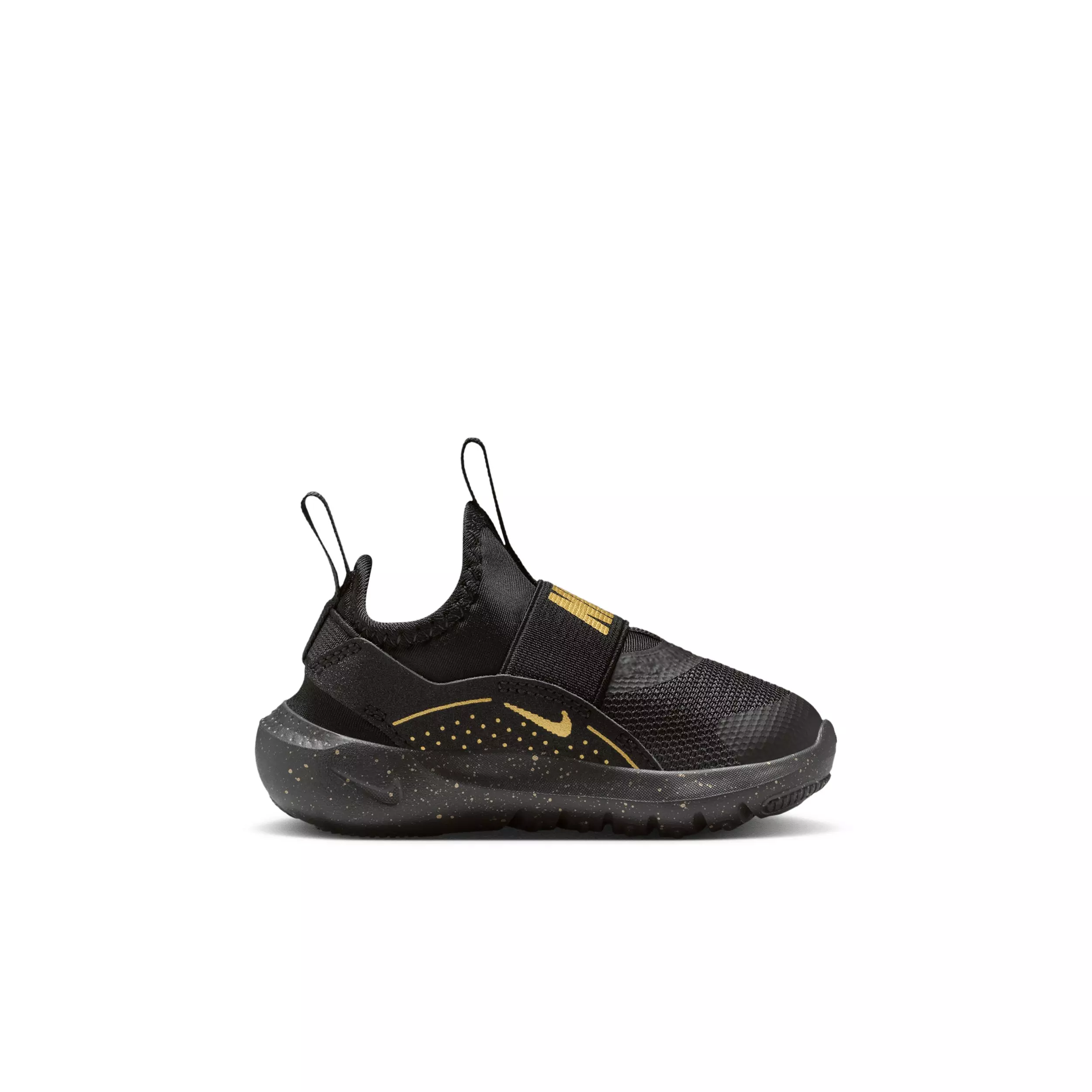 With the Nike Flex Runner 4 SE "Black/Black/Metallic Gold" Infant Boys' Running Shoe, you're always ready to race into fun. A flexible, bootie-like design makes it easy to pull on, while stretchy straps help secure your fit. Flex grooves in the outsole let your feet move naturally, helping you find your stride.Features