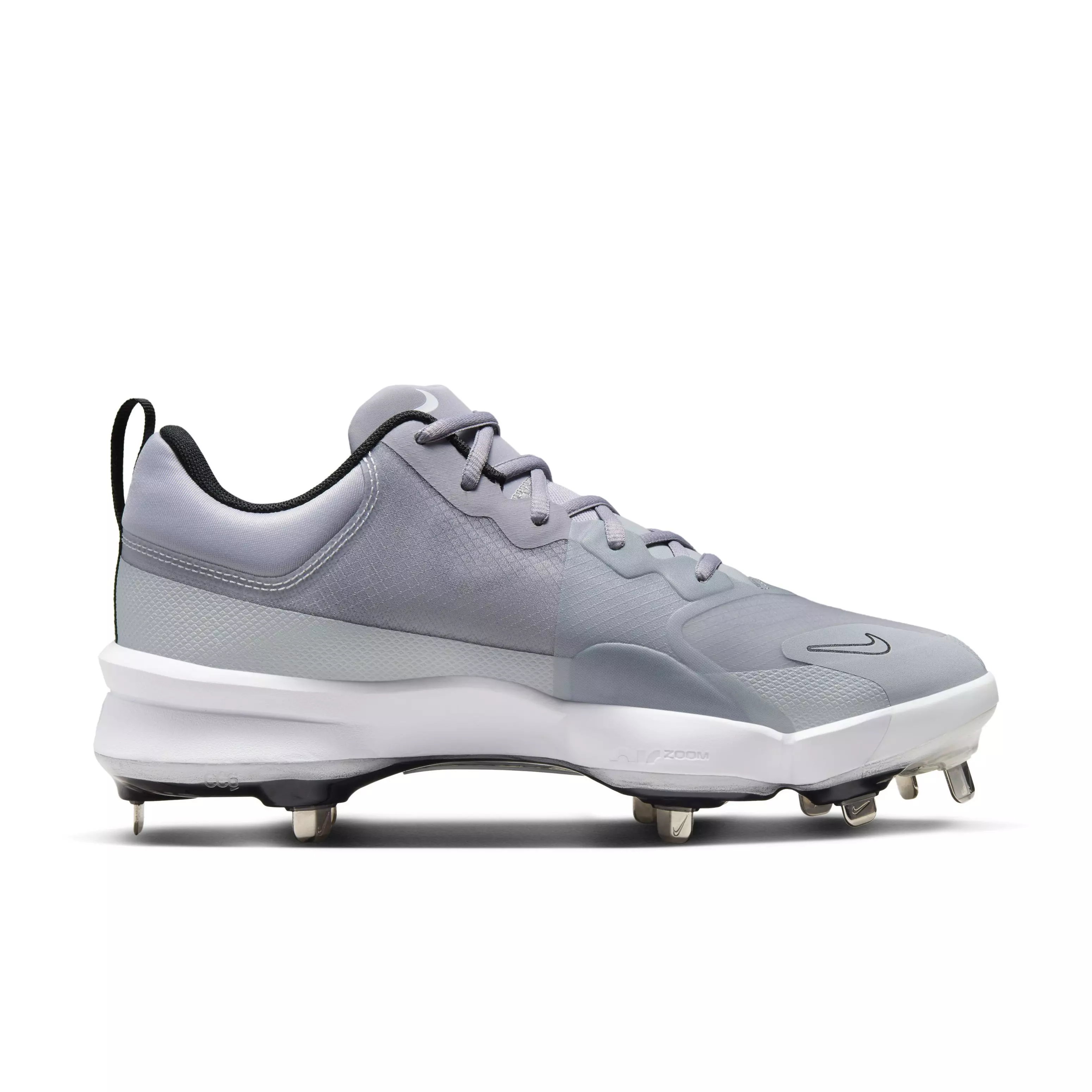 Chase every play with confident speed in the Nike Force Zoom Trout 9 Pro "Pewter/Black/Wolf Grey/White" Men's Baseball Cleat. This low-top design lightens your load while supporting quick cuts and bursts, pairing a streamlined upper with a revamped midsole for all-game comfort and energy-returning responsiveness.