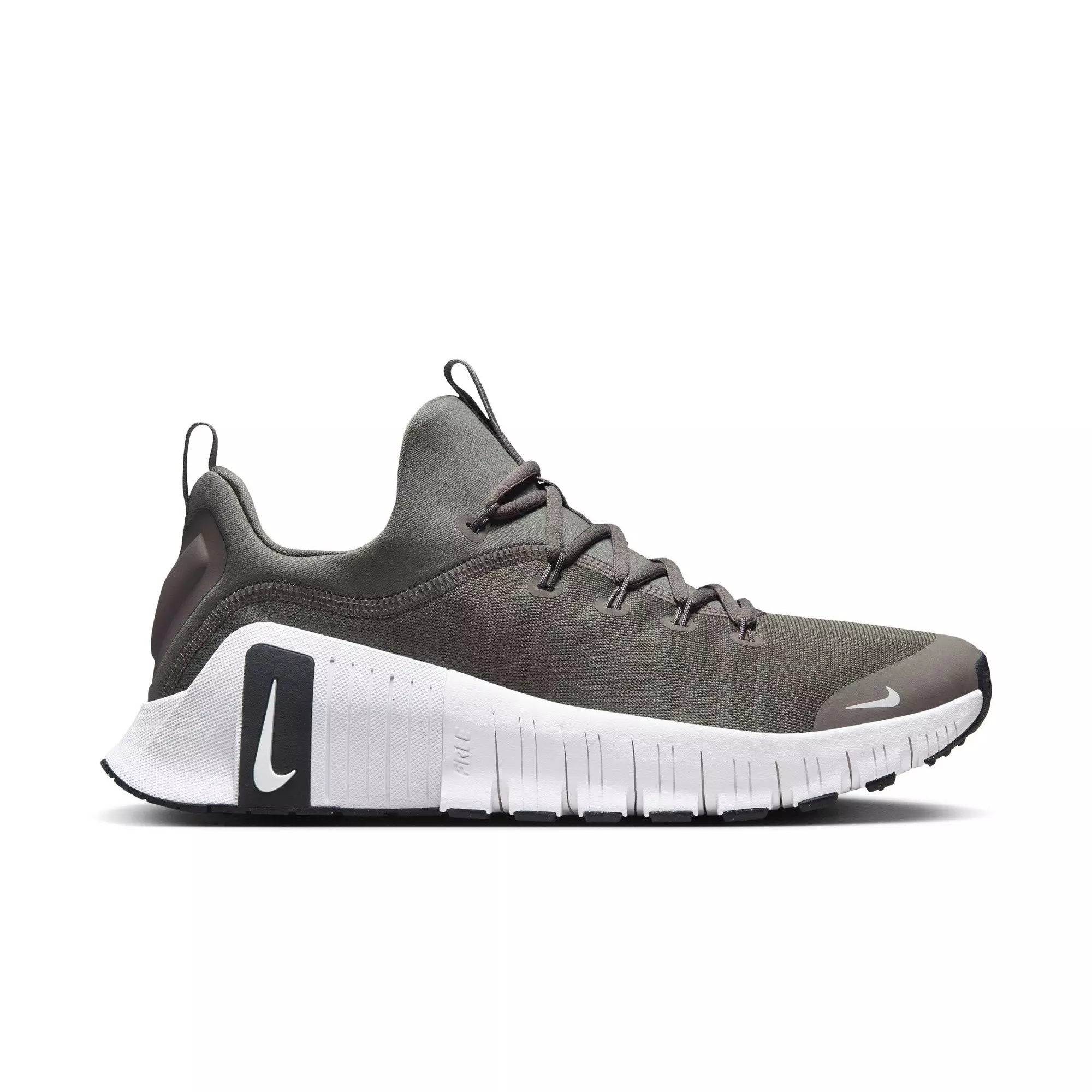 The Nike Free Metcon 6 "Flat Pewter/White/Anthracite" Men's Workout Shoe merges increased forefoot flexibility with a reinforced heel featuring extra foam. You get the most adaptable trainer that empowers dynamic movements during plyos, cardio and stable base during weight sessions with breathable mesh and grippy traction.