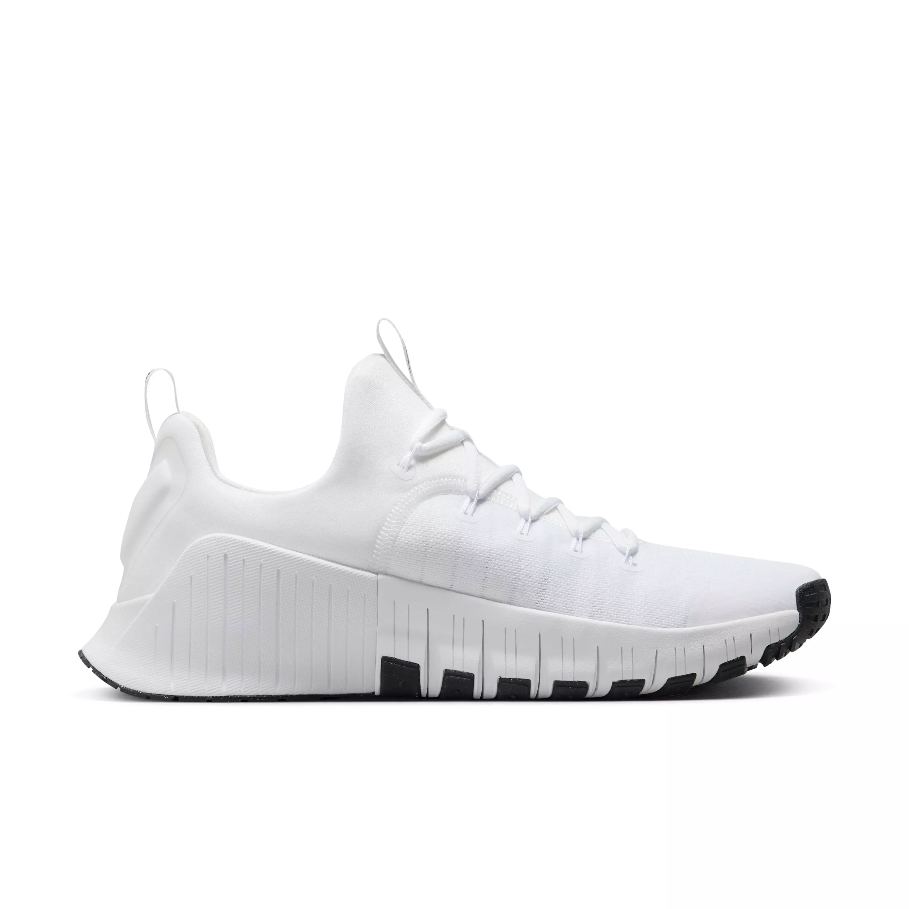 The Nike Free Metcon 6 "White/White/Black" Men's Training Shoe adapts across power lifts, ladders, grass blades, grainy platforms, turf and track. We added more forefoot flexibility into our most adaptable trainer and reinforced the heel with extra foam.