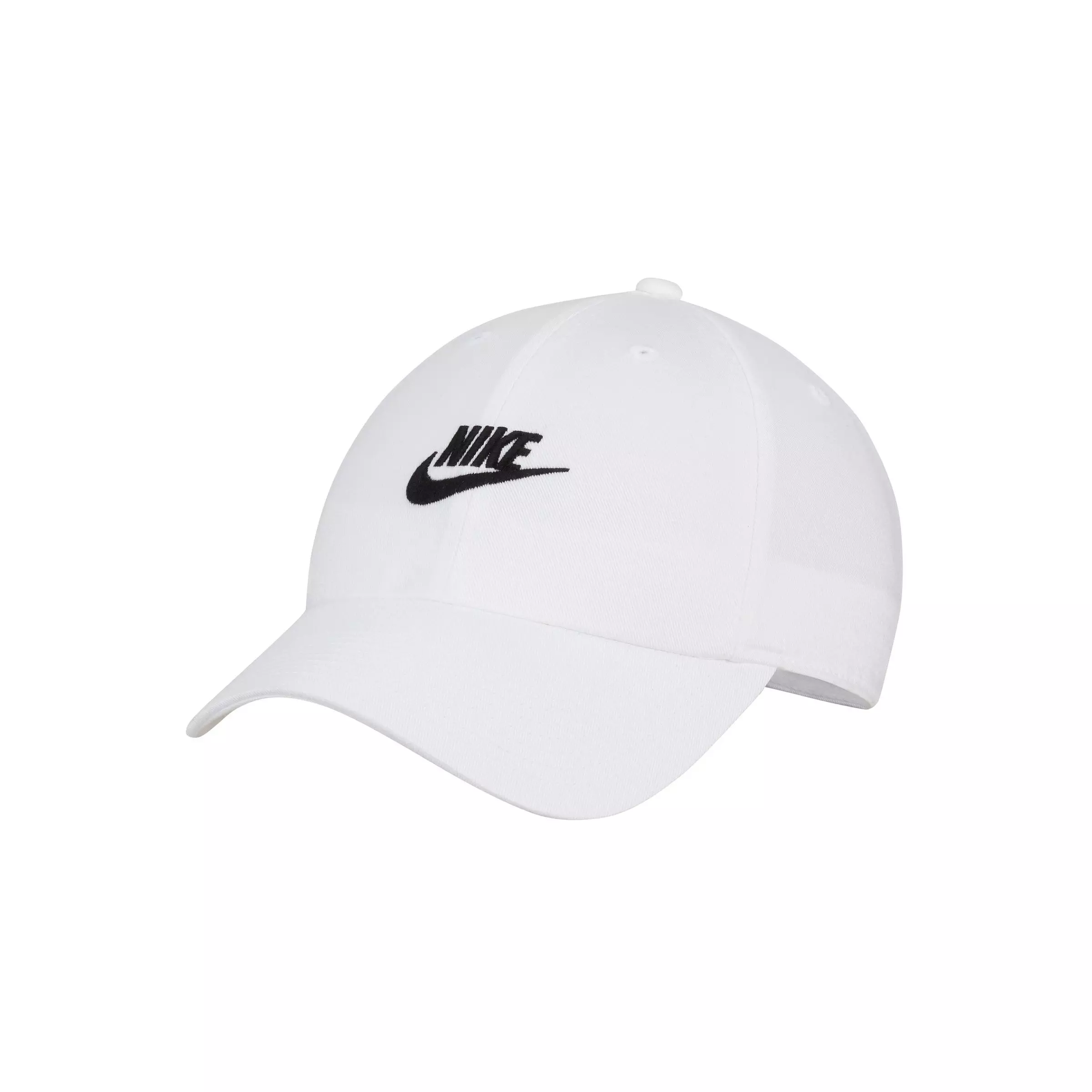 The Nike Futura Washable Adjustable Hat - White blends soft fabric and a classic six-panel design into a lightweight profile. It features an easy-to-adjust closure that ensures a precise fit.