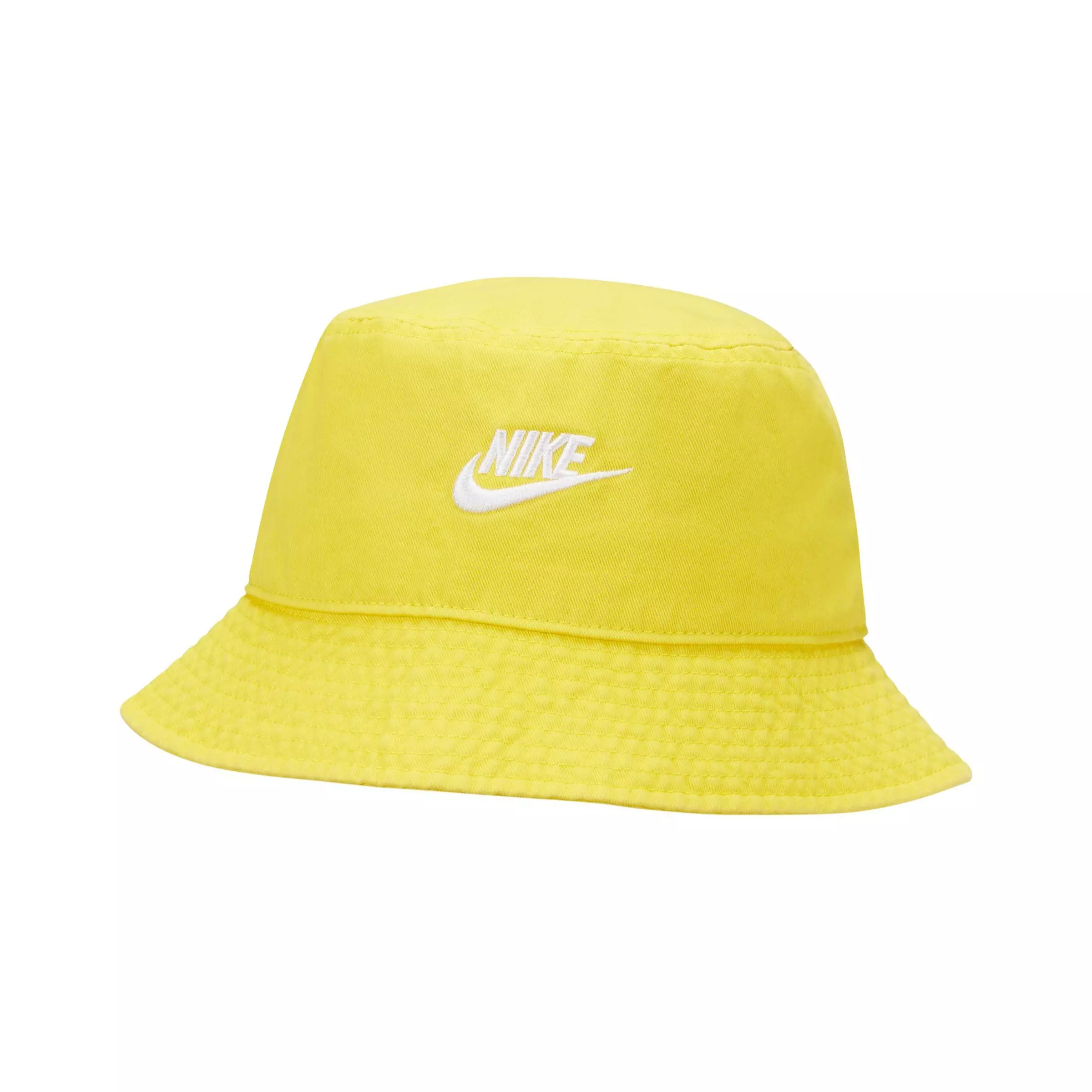 Welcome the Nike Futura Washed Bucket Hat - Yellow into your lineup. The mid-depth design is made with soft cotton and features an embroidered Futura logo for a clean Nike finish. The wash treatment softens the feel and gives it a vintage look that keeps aging to perfection the more you wear it.