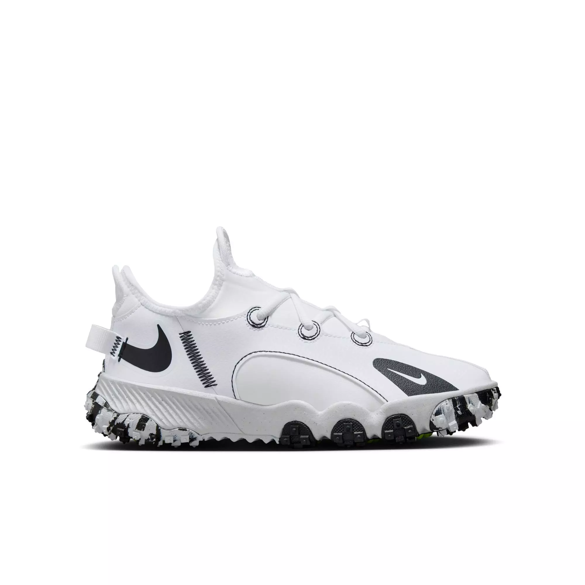 The Nike Future Field "White/Black/Volt" Grade School Boys' Baseball Cleat handles football, baseball, soccer and recess. Its durable construction resists wear on any surface.