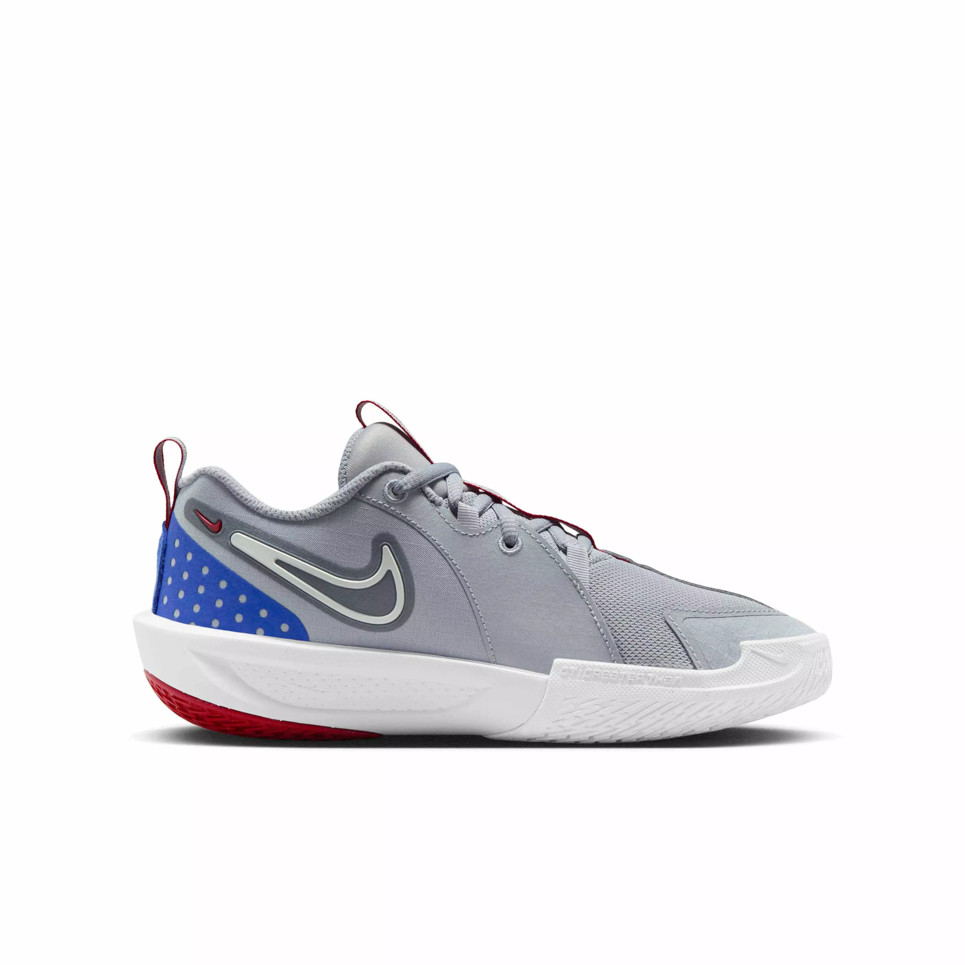 Ready to zigzag across the court with ease? Start by lacing up the Nike G.T. Cut 3 "Wolf Grey/Cool Grey/Astronomy Blue/Sail" Grade School Boys' Basketball Shoe. Made for a new generation of players, its advanced traction helps give you the grip you need to shake, stop and cross up defenders as you fly to the hoop. Light and springy foam helps cushion every step so you can cut and create space in comfort. Plus, getting game ready is easy with the wide collar opening—just grab the loops to pull these on and lace 'em up. This is the future of hoops.Features