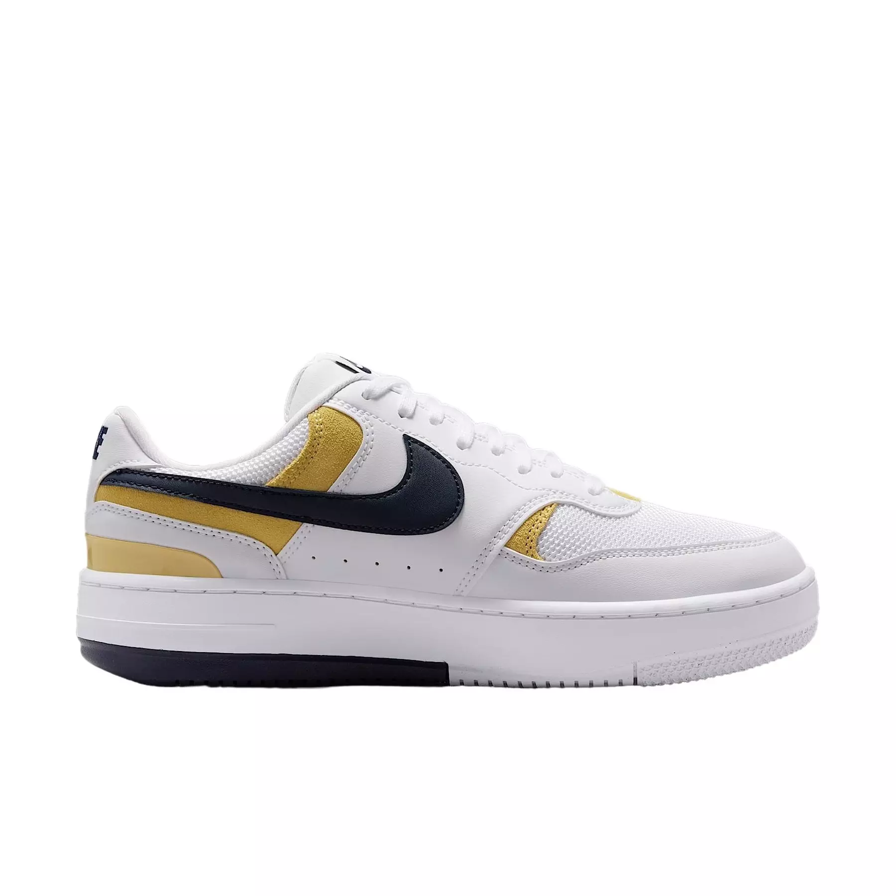 Layers upon layers of dimensional style—that's a force to be reckoned with. Offering both comfort and versatility, these kicks are rooted in heritage basketball culture. Collar materials pay homage to vintage sport while the subtle platform elevates your look, literally. The Nike Gamma Force "White/Soft Pearl/Saturn Gold/Obsidian" Women's Shoe is forging its own legacy: court style that can be worn all day, wherever you go.Features