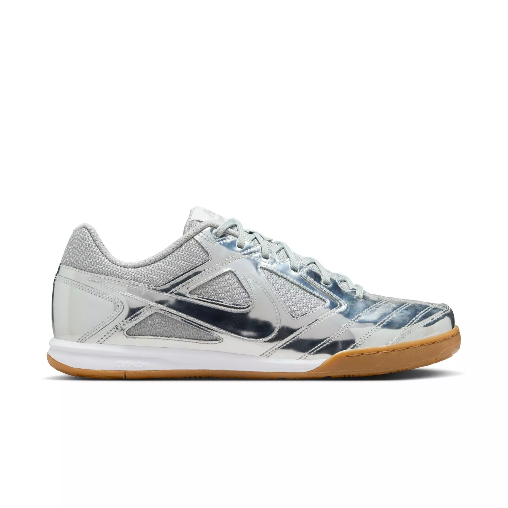 The Nike Gato LV8 "Metallic Silver/White" Men's Shoe takes a classic indoor soccer design and reimagines it for the streets. A low-profile silhouette combines precise touch with agile movement, giving wearers a confident feel in every step. Its street-ready grip and versatile profile make it easy to transition from casual play to daily wear.